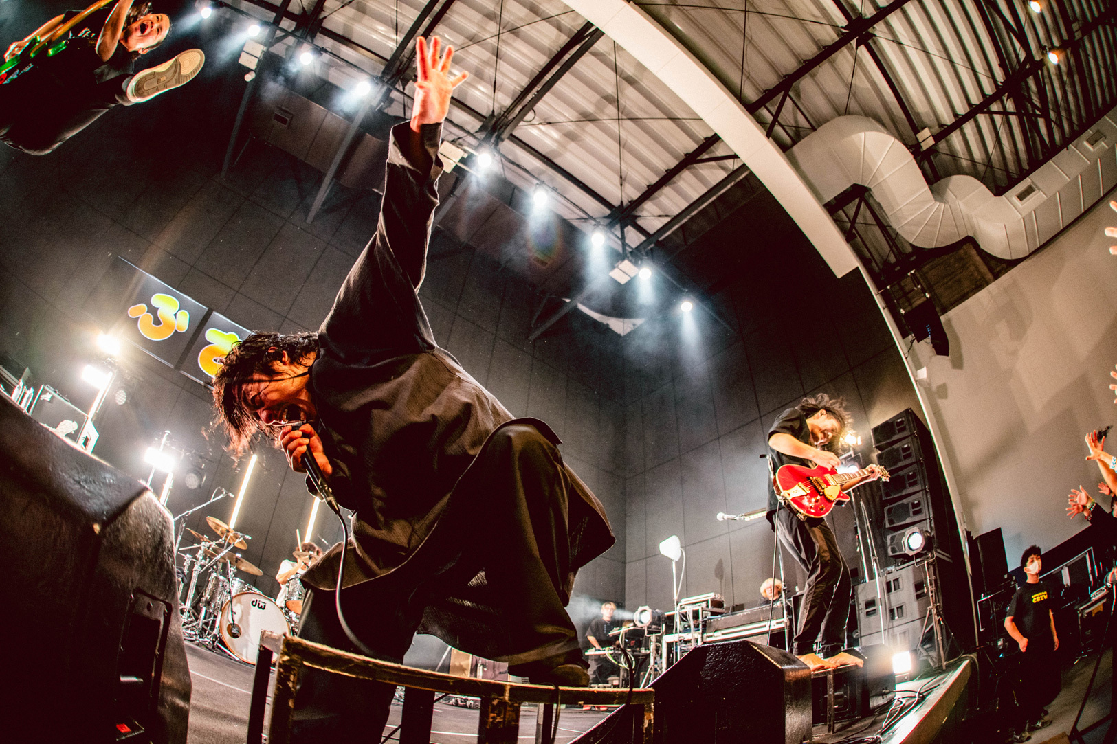 昼12時・UZU HALL。THE BACK HORNが登場。1曲目「刃」での一声一音が鳴らされた瞬間から凄みがエグい……。ドラムの松田晋二が「四星球とバックホーンは音楽ジャンルなど真逆と思うかもですが、みなさんの心を震わせたいと想う気持ちは一緒です」と言ったが、それが全てだと思った。ツアーにも呼んでもらってると話して、「熱いライブをして恩返しをしたいと思います」とも言ったが、このバンドマンシップに我々は感動してしまうし、より惹き込まれる。ボーカルの山田将司の縦横無尽に動き回る姿も堪らないし、硬派な漢のロックなライブを浴びせてもらえた。