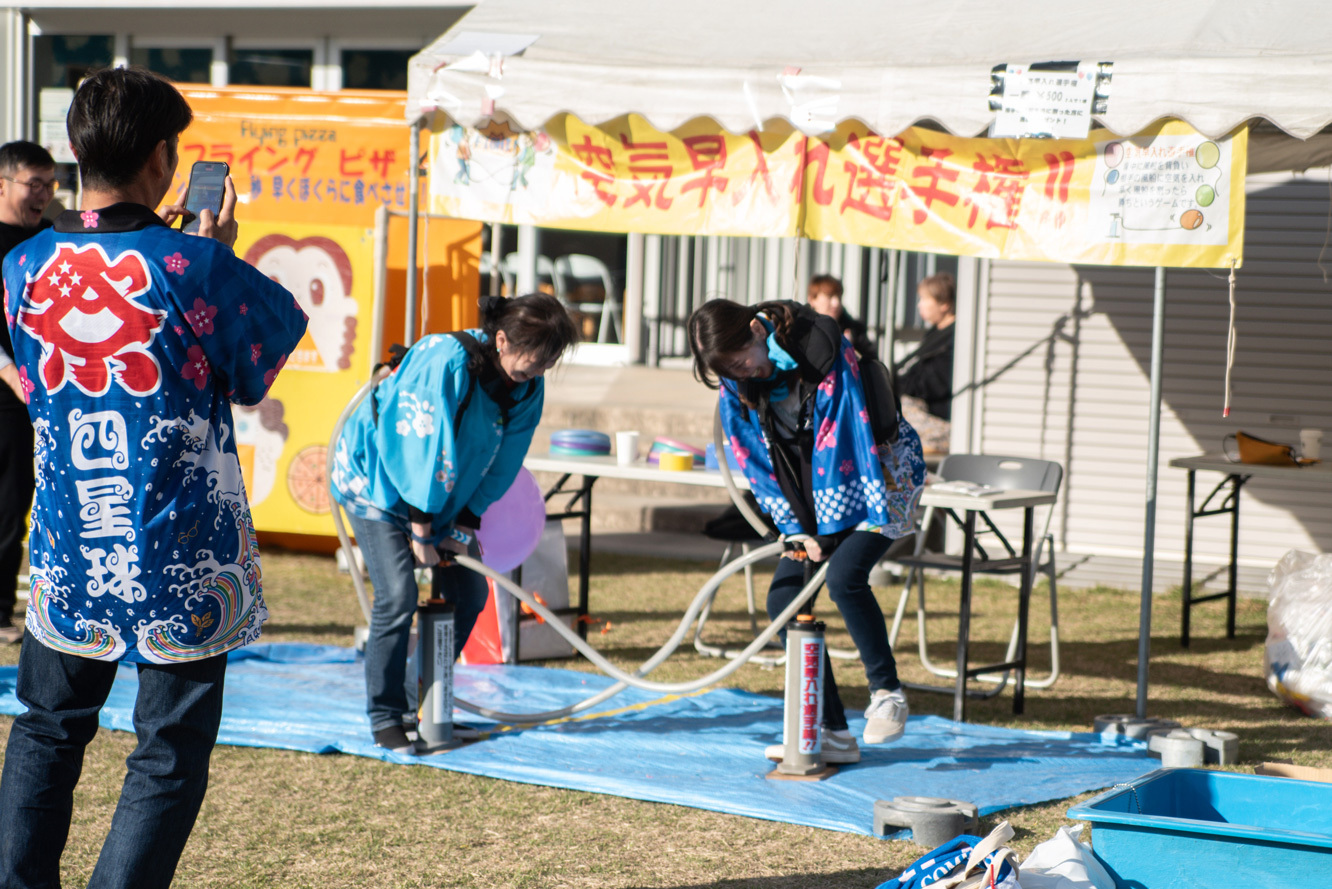 ふと芝生広場に出ると、初日にはなかった食べ物の屋台や子供遊具の屋台や地元企業の屋台やアパレルの屋台などが出揃っている。U太は知り合いにミットを持ってもらい、パンチとキックでスパーリングをしている。この何でもありな自由さも地方のお祭り感があって楽しい。