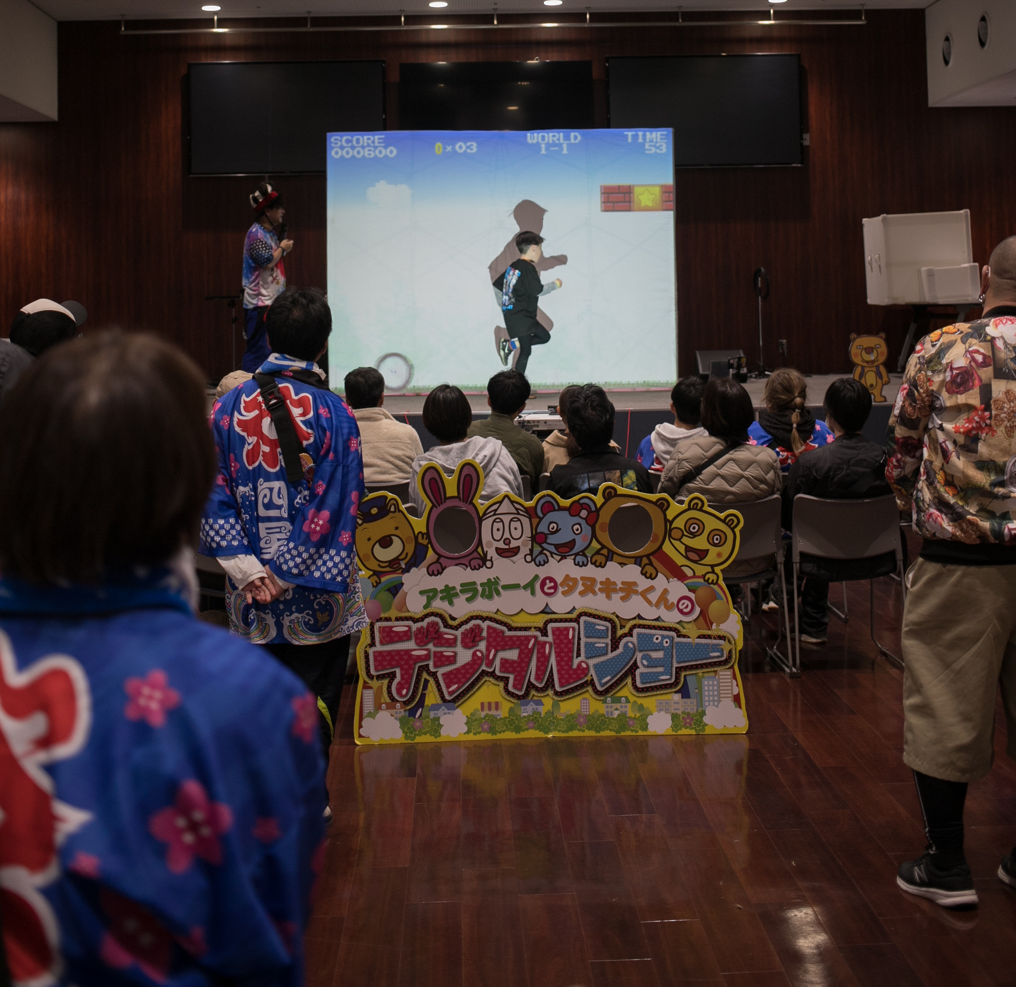 昼13時50分・なるちゃんホールステージ。アキラボーイデジタルショー。要はスクリーンの映像を連動させながら、観客体験型で楽しむショーなのだが、前回も思ったが四星球は大人だけではなくて子供まで楽しませることを常に考えてるし、自分たちのお祭りを主催するとなると、そこにかなり重点を置いている。ライブに行きたいけど子供がいるから行けないとなる人は増えてくるわけで、そういう意味ではとても優れたお祭りだと心から思う。