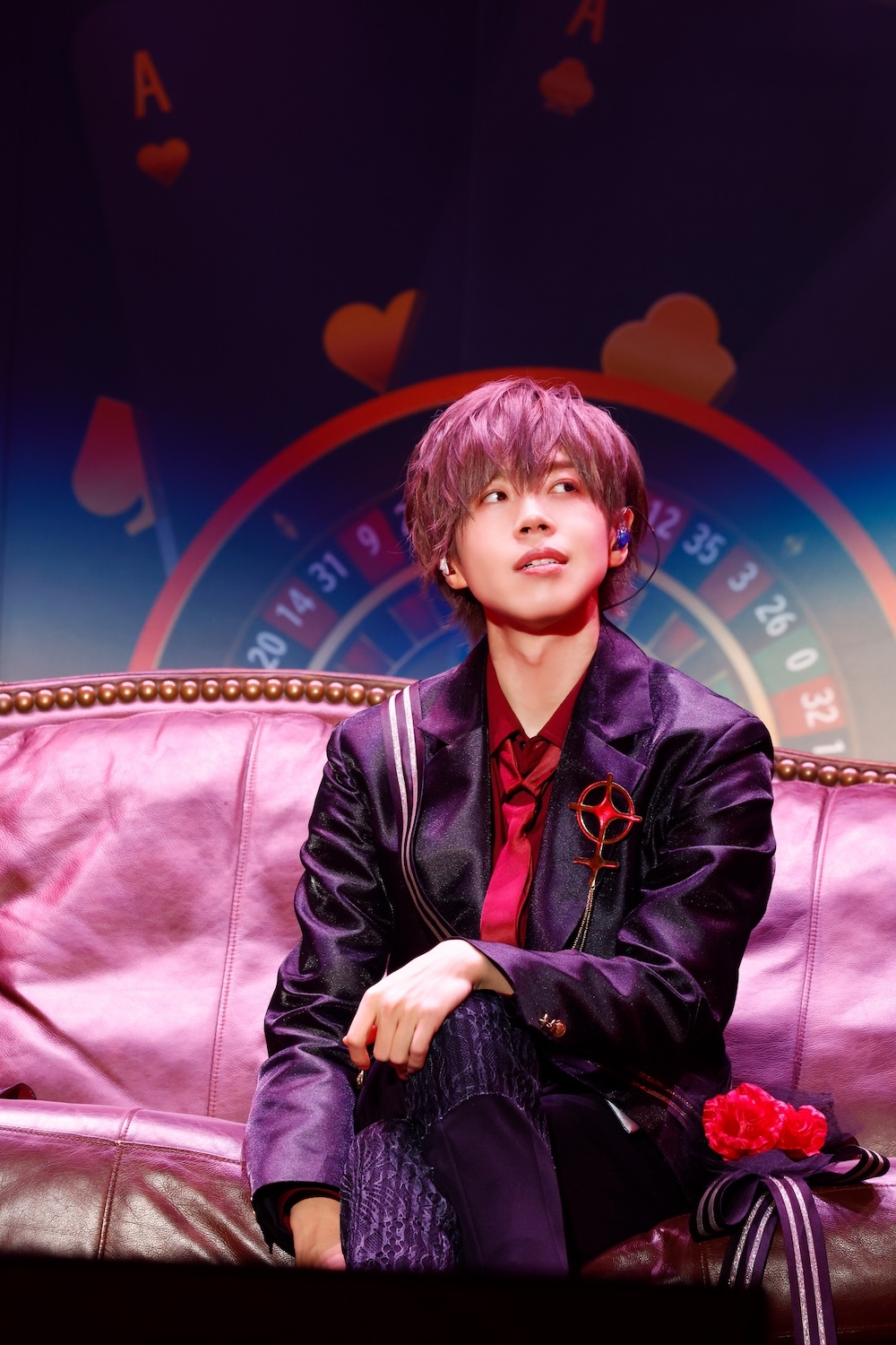 題して『そらまふうらさかの運だめし~新年会2025~』。掲げられていたライブタイトルのとおり、1月29日と30日の2日間にわたってステージに立ったのはそらる、まふまふ、うらたぬき、あほの坂田。の4人。そして、今回のライブにおいてテーマとされていたのはこれまたタイトルどおりの“運だめし”だったのである。舞台上にはカジノゲームをイメージさせるようなルーレット、ダイス、カードなどをモチーフにしたオブジェや、アンティークなデザインのカウチソファが用意されており、高級カジノの中でも限られた一部の人間だけが立ち入ることの出来るハイローラーズ・ラウンジのような雰囲気。