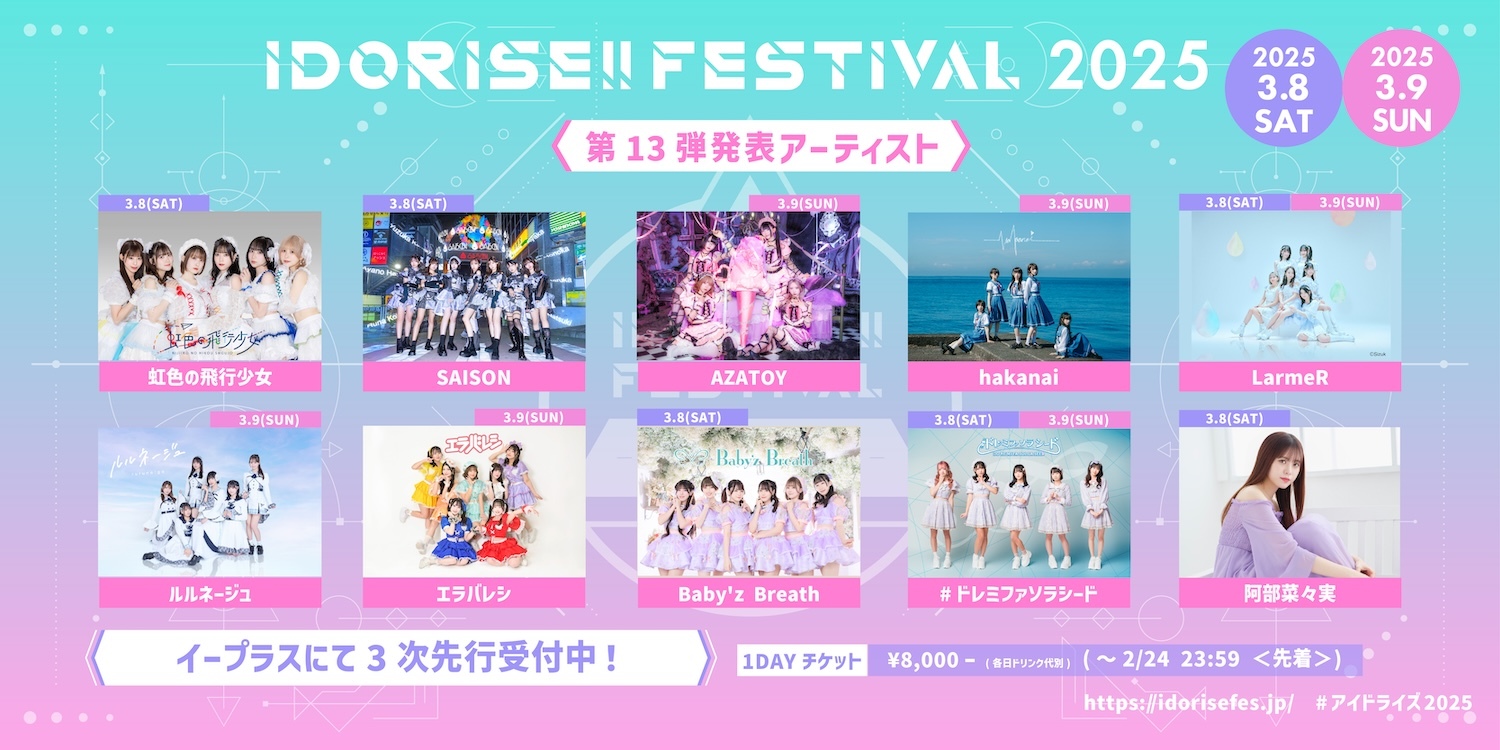 2025年3月8日(土)・9日(日)の2日間、東京・渋谷にて開催される『IDORISE!! FESTIVAL 2025』の第13弾アーティストが発表された。