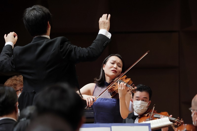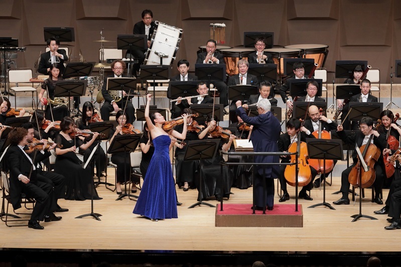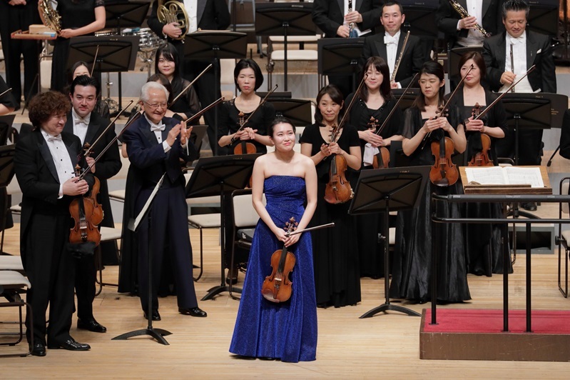 辻彩奈に拍手を贈る指揮者の秋山和慶 (C)飯島隆