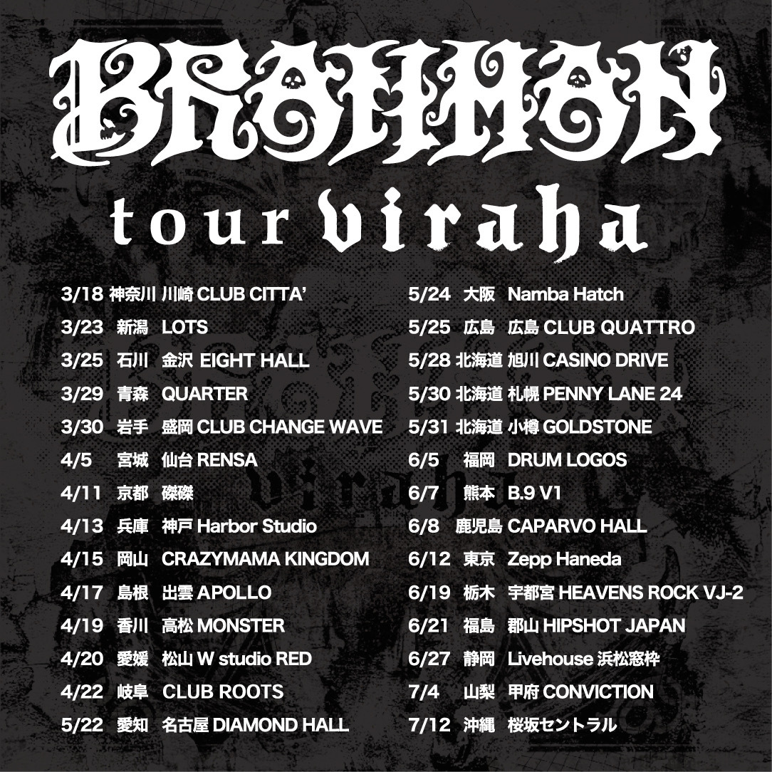 2025年2月26日(水)に7年ぶり7枚目となるフルアルバム『viraha』のリリースを控えているBRAHMAN。リリースに伴い開催されるツアーでは、全国28会場で対バンライブを行う。