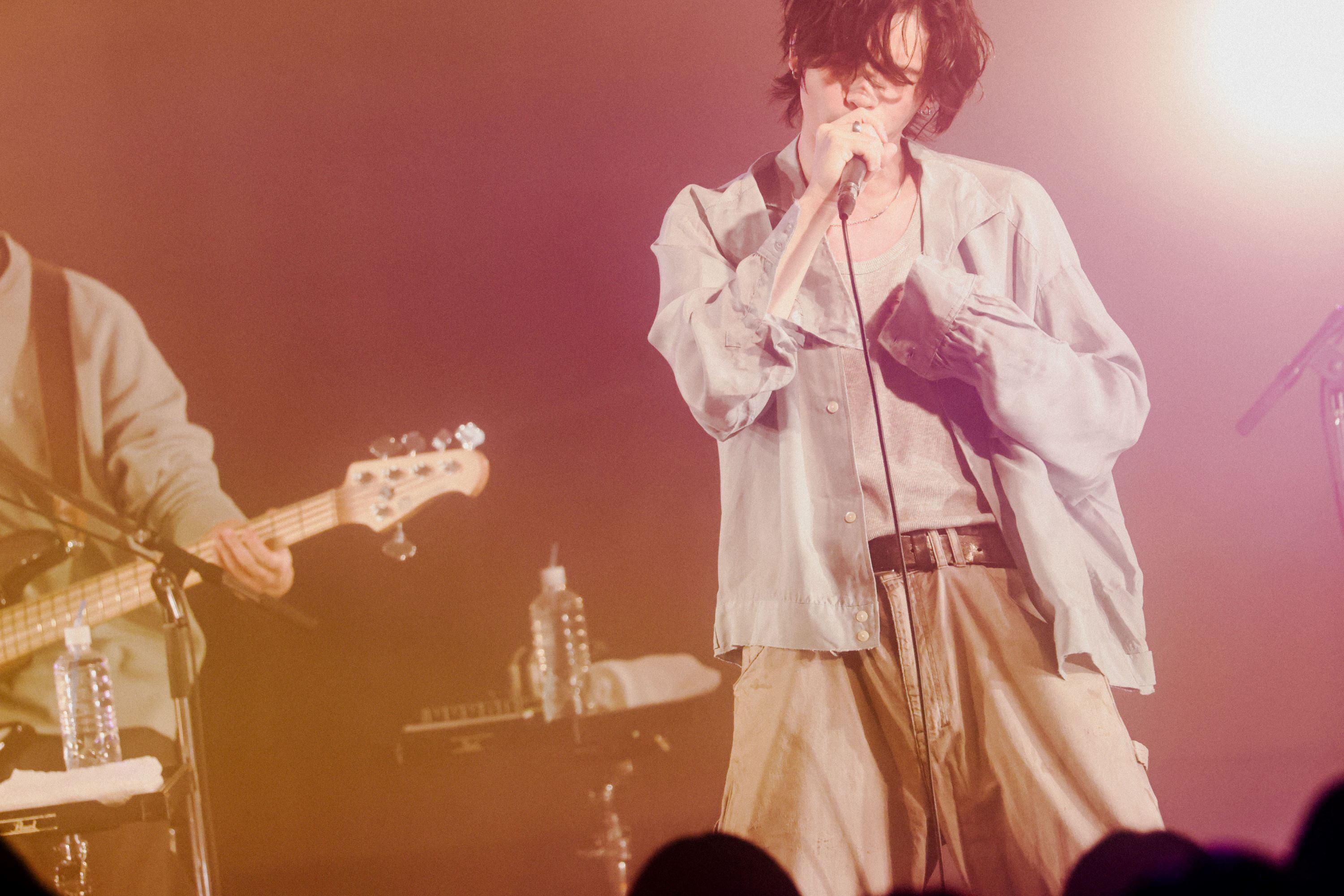 「みんないけそうすっすね」と初手の反応に手応えを感じた浜口。「シンデレラ」では<思い描いた未来は幸せになれって 君に叶えてほしかったのにさ>という歌詞に「大阪」というワードを付け足すなどのアレンジを見せ、「アダムとイブ」では「みんなの今年一番の大きな声を聞きに来ました、声を出せる人いますか。今から歌う言葉を真似して歌ってください」と観客にシンガロングをリクエスト。「大阪、もっとちょうだい」「もっと!」とフロアから声を引き出していく。そうやってお互いが呼応する様からは、moon dropと観客の間にある強い信頼が感じられた。その光景は「アダムとイブ」の一節<こんな世の中で一体何を信じたらいい>のアンサーになっているようだった。