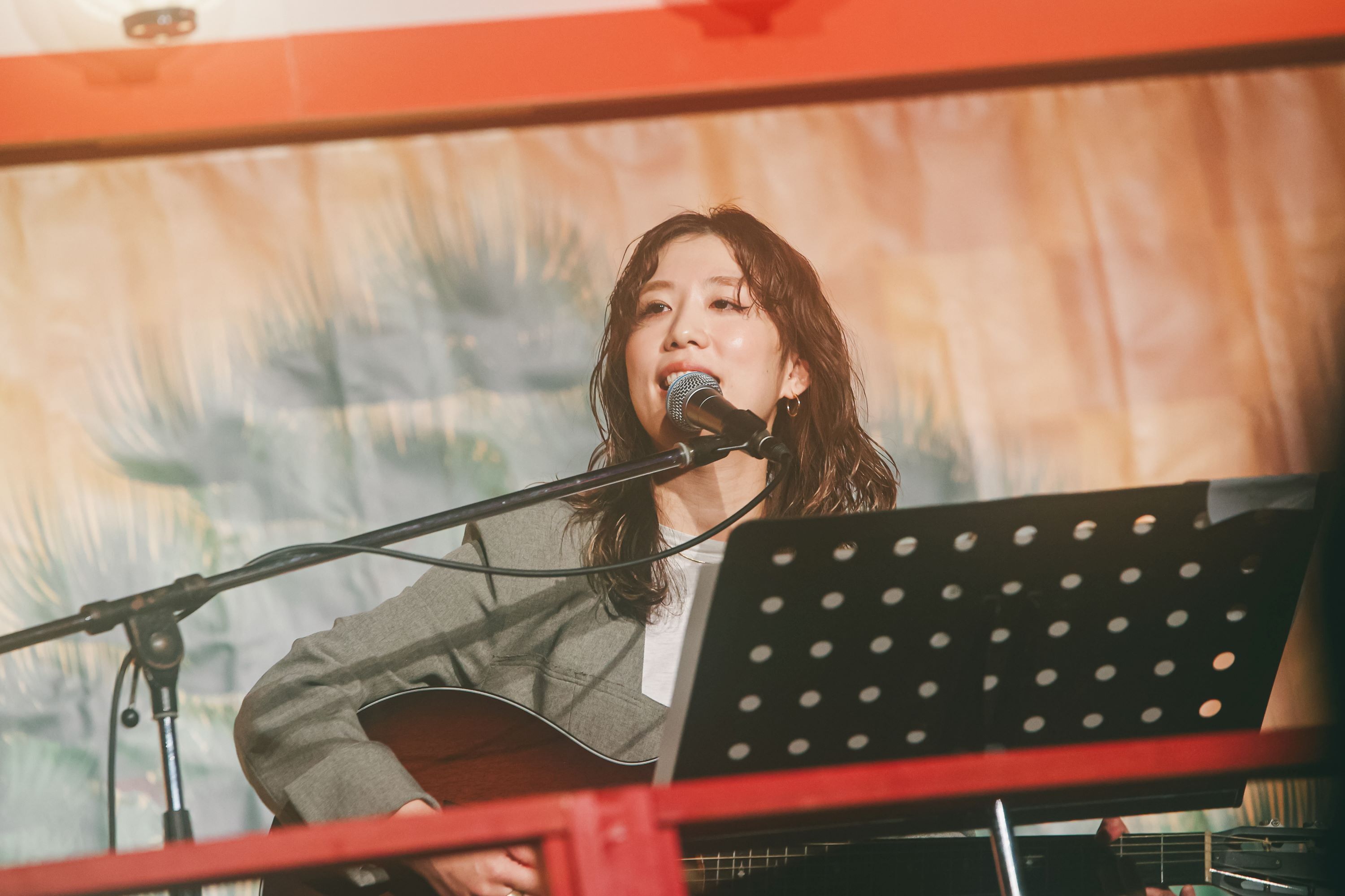 林の弾き語りを初めて観るという人や、産休中にバンドを好きになってた人もいたはず。「弾き語りでこんなおっきいステージに出させてもらうのは初めて」ということで、自己紹介。「初めまして。30歳、普段は主婦をしています。一人息子がいてるんですけど、ミルクやオムツ代を稼ぎに歌いに来てます」と、さらっと挨拶。すると、少し緊張感のあった会場の空気がほどけた。