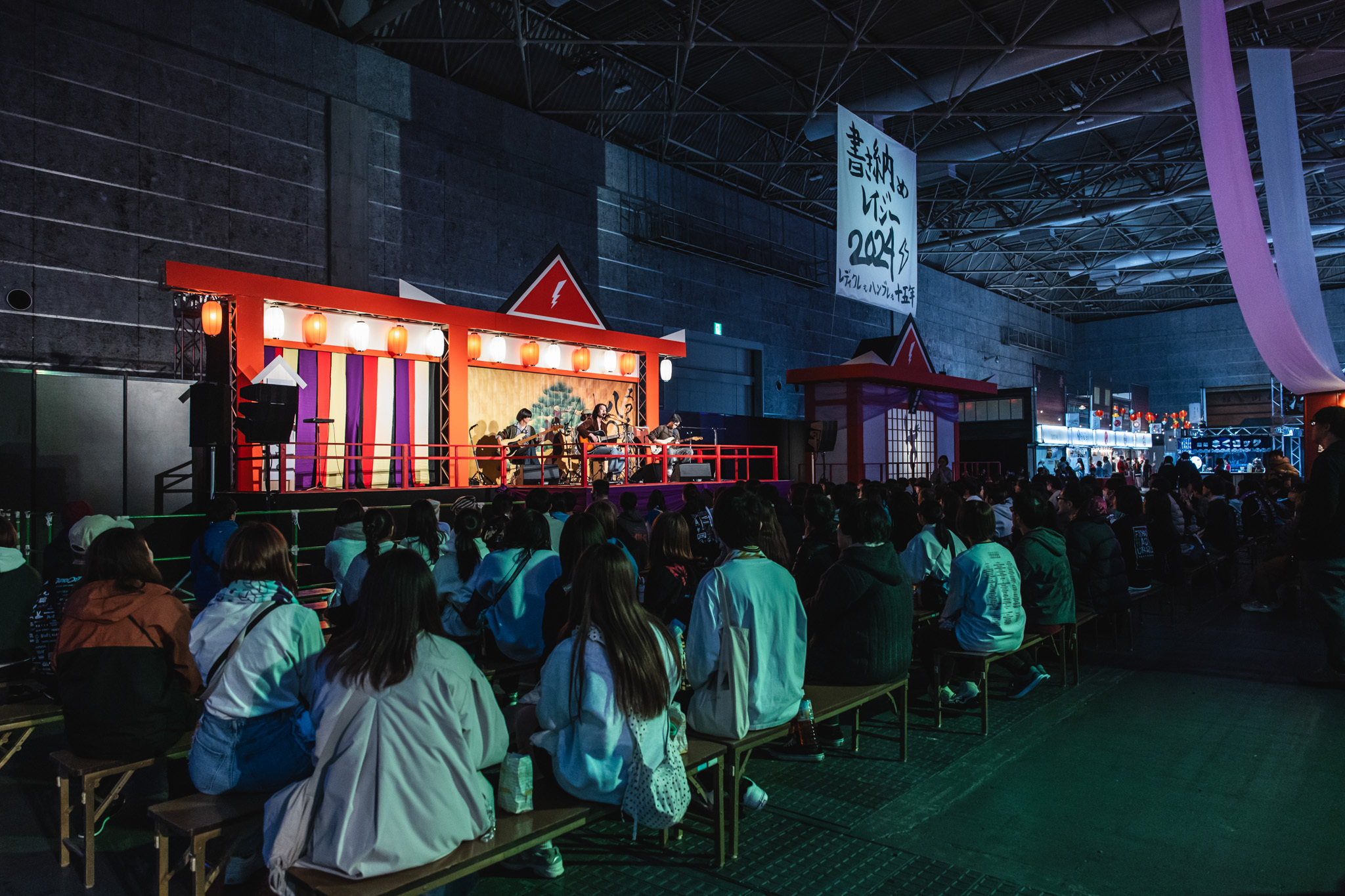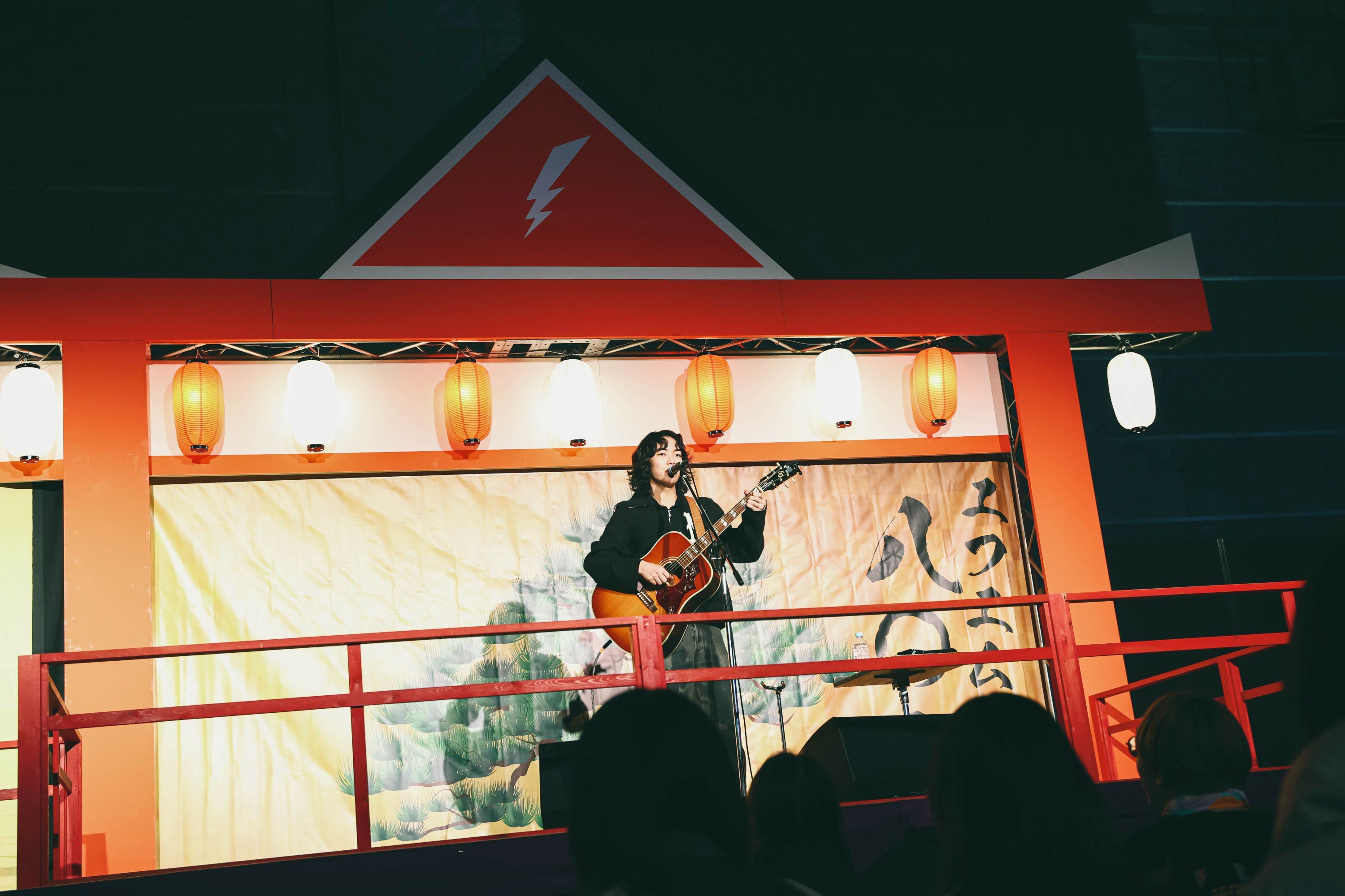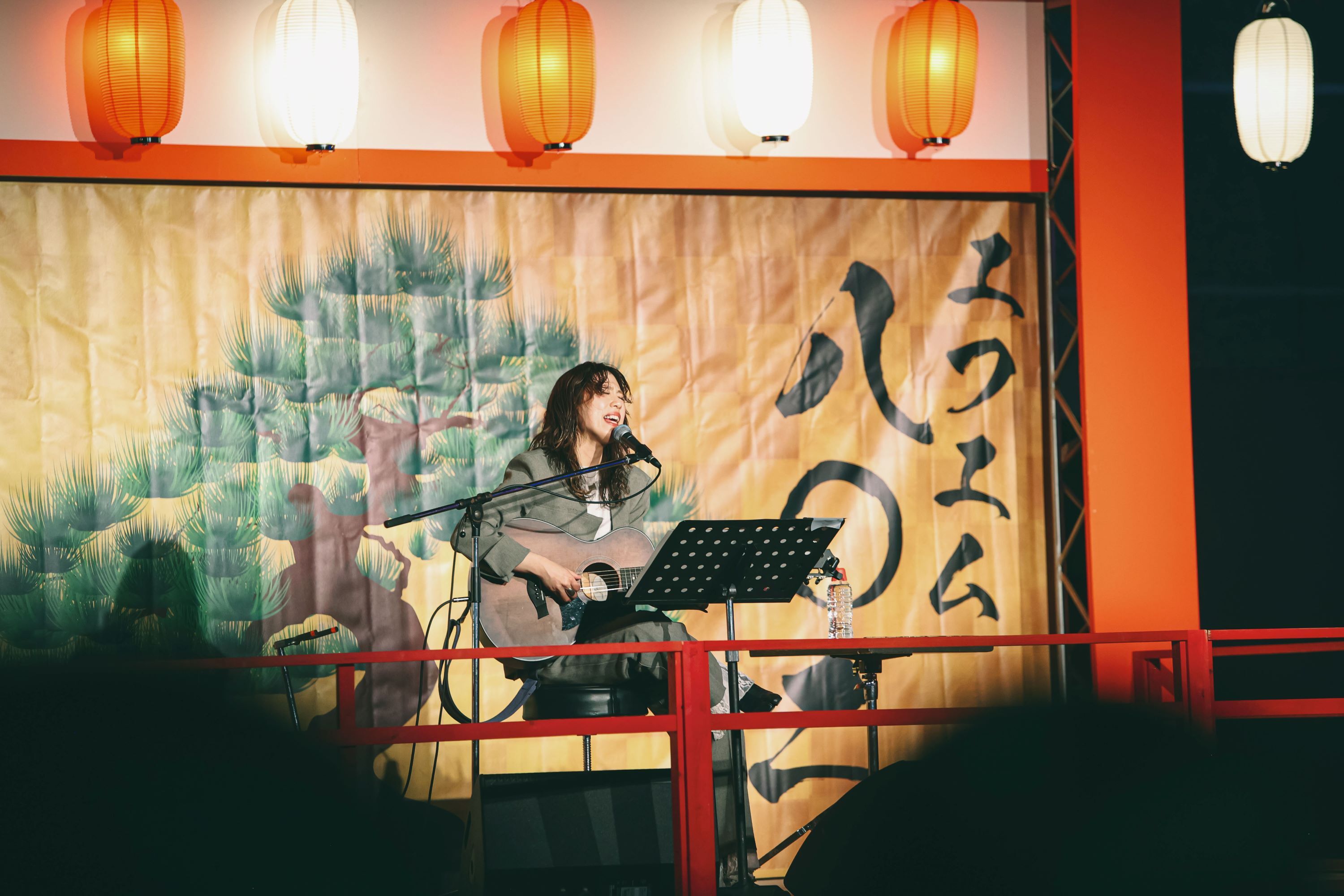 神社の境内をモチーフにしたステージは、能楽堂のような佇まいもあり、異彩を放つ。舞台に立つのは2021年11月FM802ヘビーローテーションにも選ばれた映秀。である。1曲目は、まさしく、そのナンバー「脱せ」。弾き語りではあるが、ギターカッティングは力強く、聴く者全てに届く。続くは2024年11月にリリースされたばかりの「ほどほどにぎゅっとして」。アコースティックギター1本ながら独特のファンクグルーヴを体現できているのは凄い。勢いそのままに、これまた2024年12月にリリースされたばかりの「涙のキセキ」へ。来春には大学を卒業してプロミュージシャンとして生きていく決意をした映秀。の覚悟を感じるナンバー。どのような想いを楽曲に込めたかを丁寧に説明してくれるので、聴く側も感情移入しやすくなる。