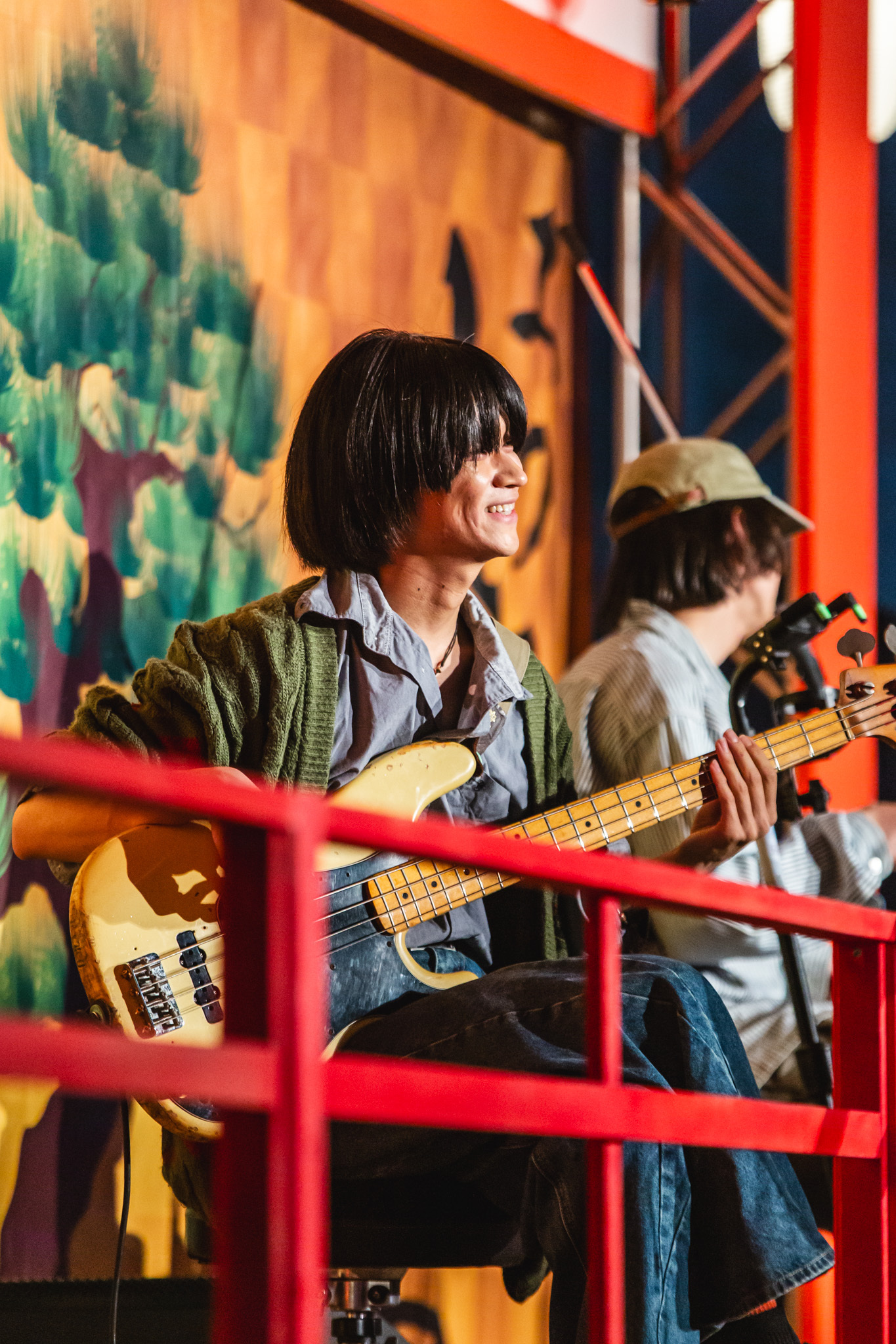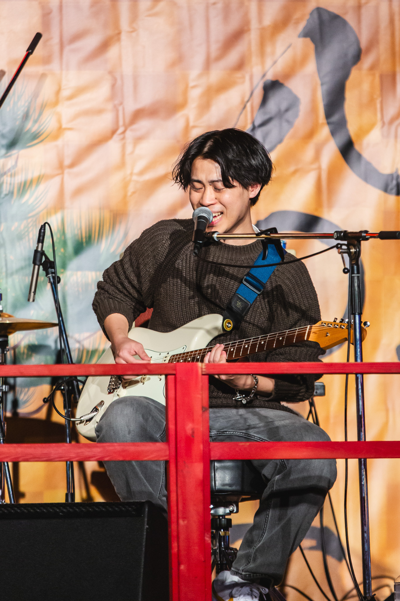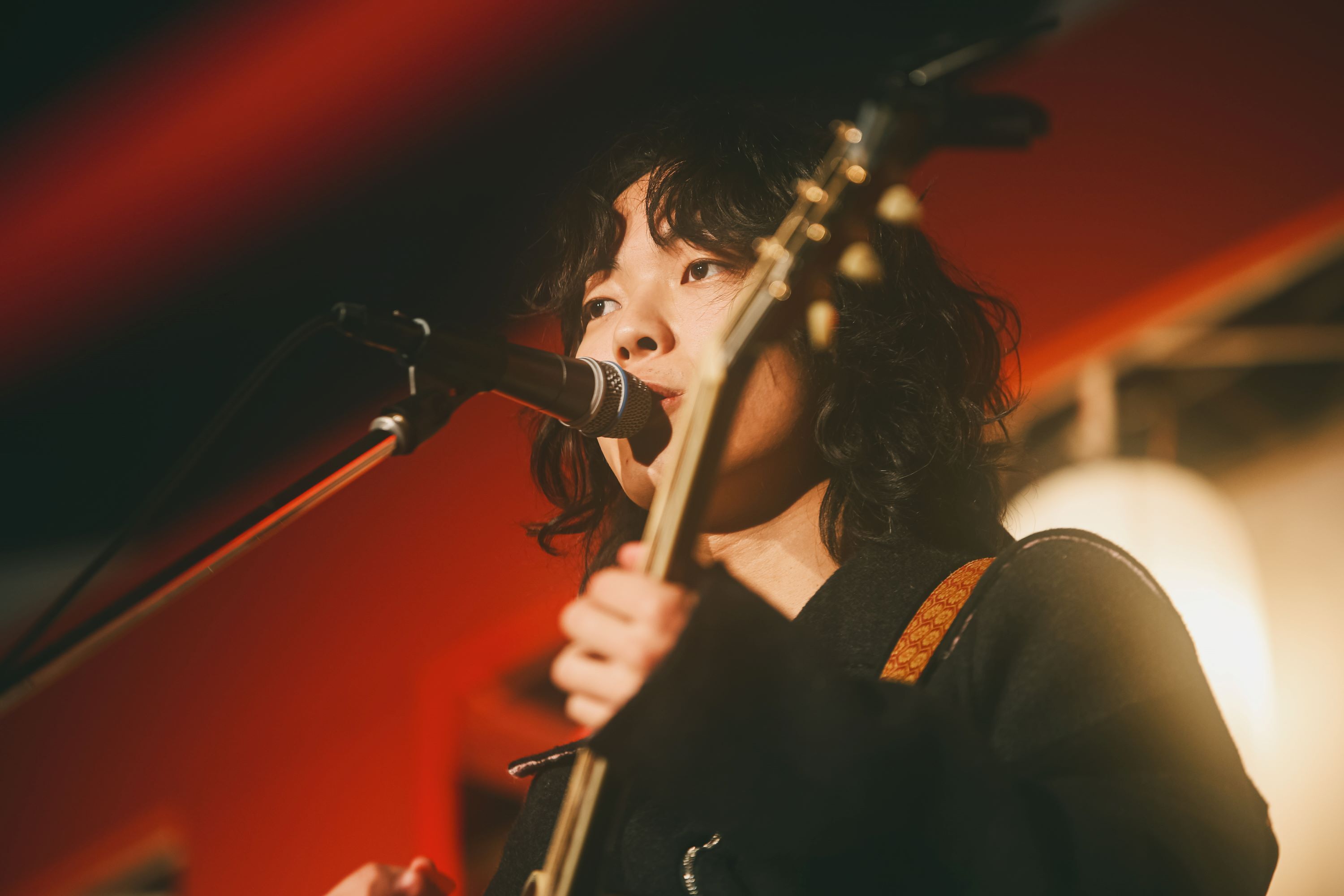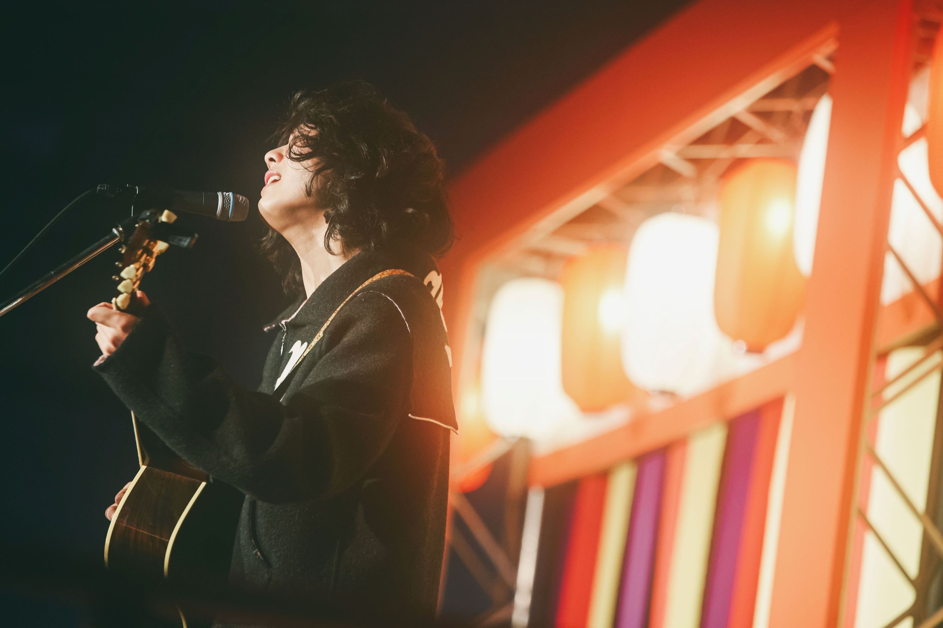 神社の境内をモチーフにしたステージは、能楽堂のような佇まいもあり、異彩を放つ。舞台に立つのは2021年11月FM802ヘビーローテーションにも選ばれた映秀。である。1曲目は、まさしく、そのナンバー「脱せ」。弾き語りではあるが、ギターカッティングは力強く、聴く者全てに届く。続くは2024年11月にリリースされたばかりの「ほどほどにぎゅっとして」。アコースティックギター1本ながら独特のファンクグルーヴを体現できているのは凄い。勢いそのままに、これまた2024年12月にリリースされたばかりの「涙のキセキ」へ。来春には大学を卒業してプロミュージシャンとして生きていく決意をした映秀。の覚悟を感じるナンバー。どのような想いを楽曲に込めたかを丁寧に説明してくれるので、聴く側も感情移入しやすくなる。