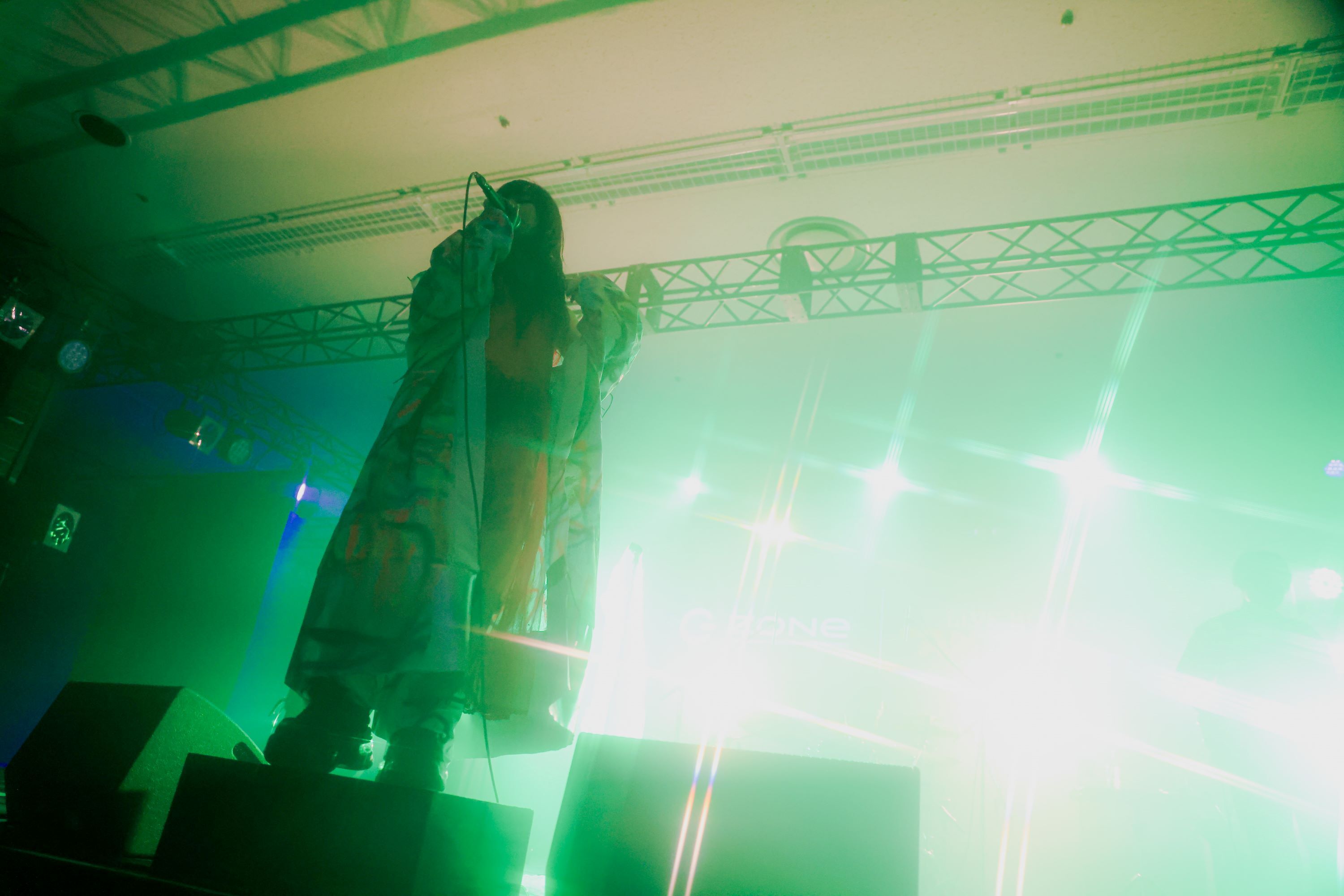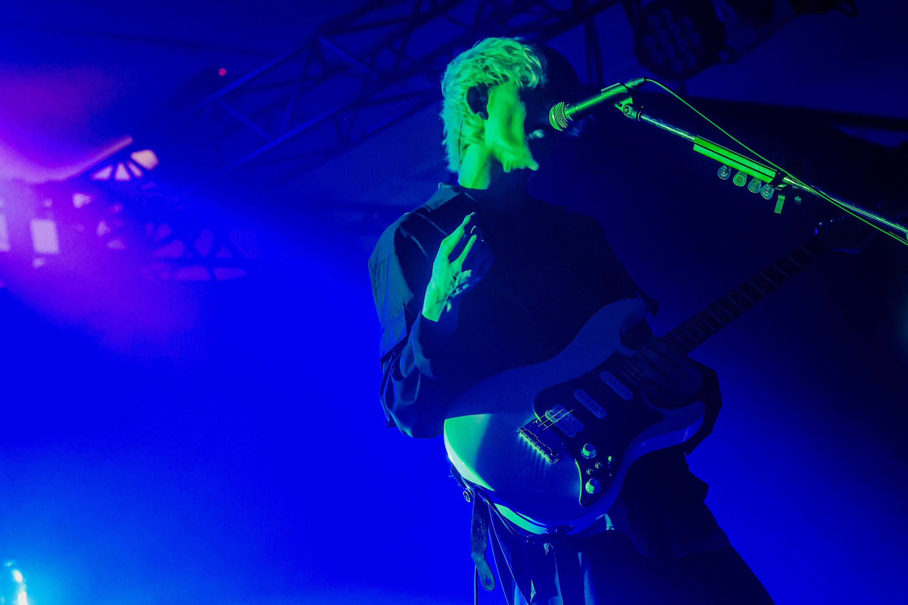 手を揺らしながらステージを歩き回るjo0jiは、純真無垢なムードと厭世的な雰囲気を纏っており、「ワークソング」では前者、「escaper」では後者の側面が濃い香りを放っていた。とはいえ、彼は完全に悲観しているわけではない。