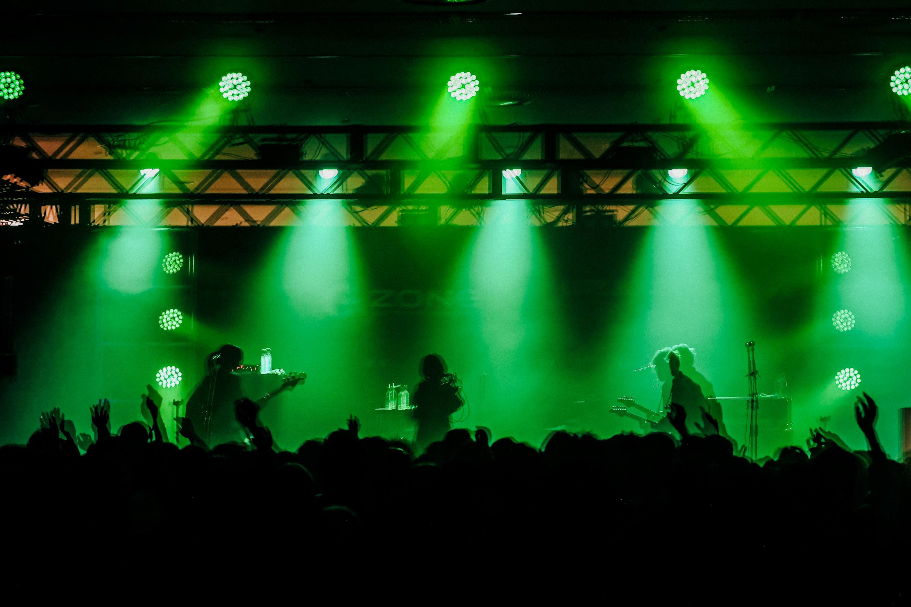 「アートロック」を掲げる3人のパフォーマンスは、呼吸音がするSEからシームレスで「自白」へとつなぎ、開始。光の中に浮かび上がるシルエットからyowa(Vo.Gt)の鋭いハイトーンや、AOi(Vo.Gt)のラップを轟かせる。さらに「プルートー」、「求世主」、「天使と悪魔」を連ね、AOiが「飛べるか、『レディクレ』!」と煽れば、多くの手がアップ&ダウン。サウンドはあやしげにもドラマチックにもなって体を突き動かす。加えて曲の合間も物語をナビゲートするようにSEが埋め尽くされ、実にイマーシブだ。