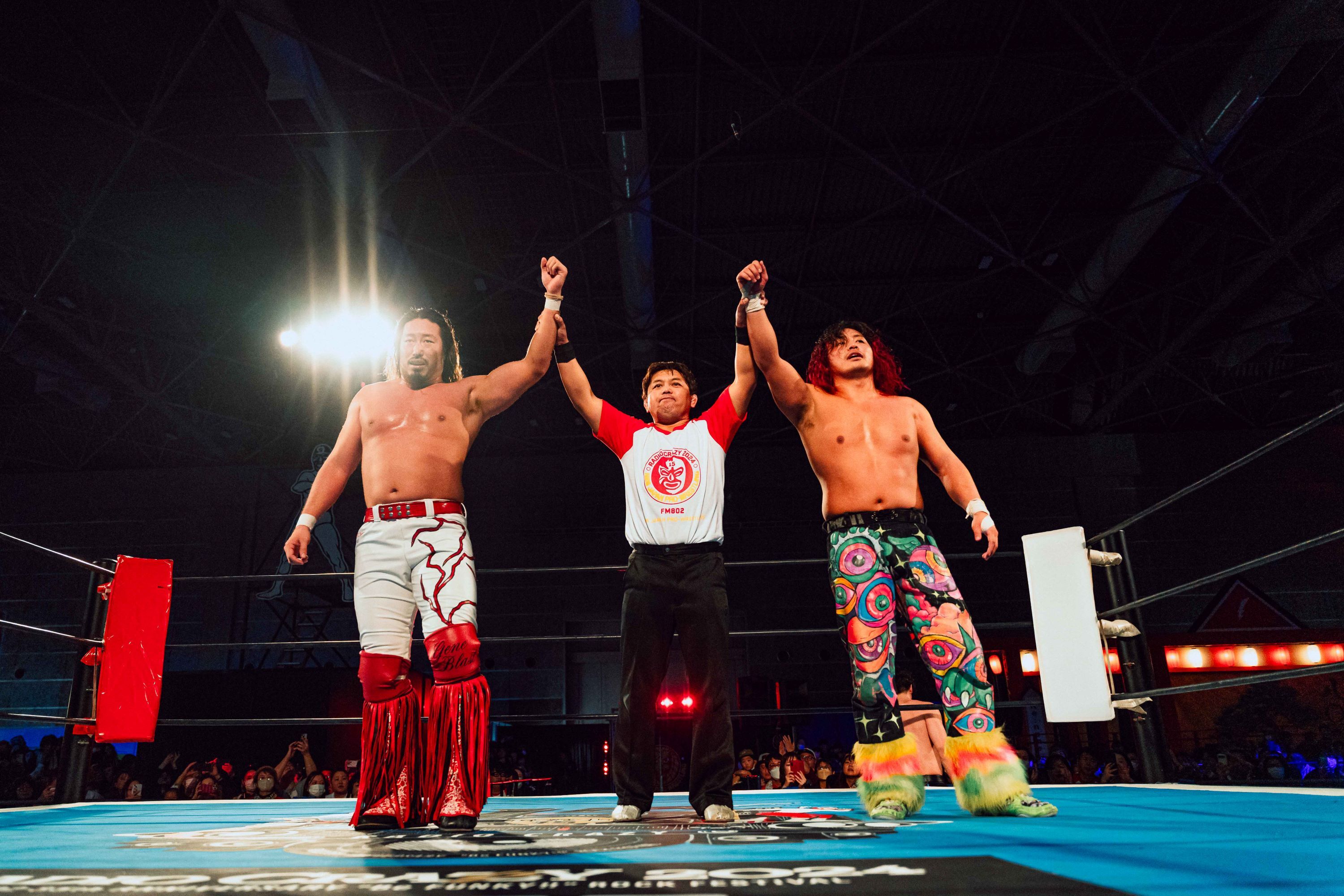 新日本プロレス所属のレスラーが餅つきに参加するのは恒例行事であったが、15周年目で遂にプロレススペシャルマッチが開催されることに。2024年10月から3ヶ月にわたり、高橋ヒロムがFM802『EVENING TAP』の毎週火曜日夕方6時台の20分枠「ELECOM scuchame 802」のDJを担当していたことが大きいだろう。