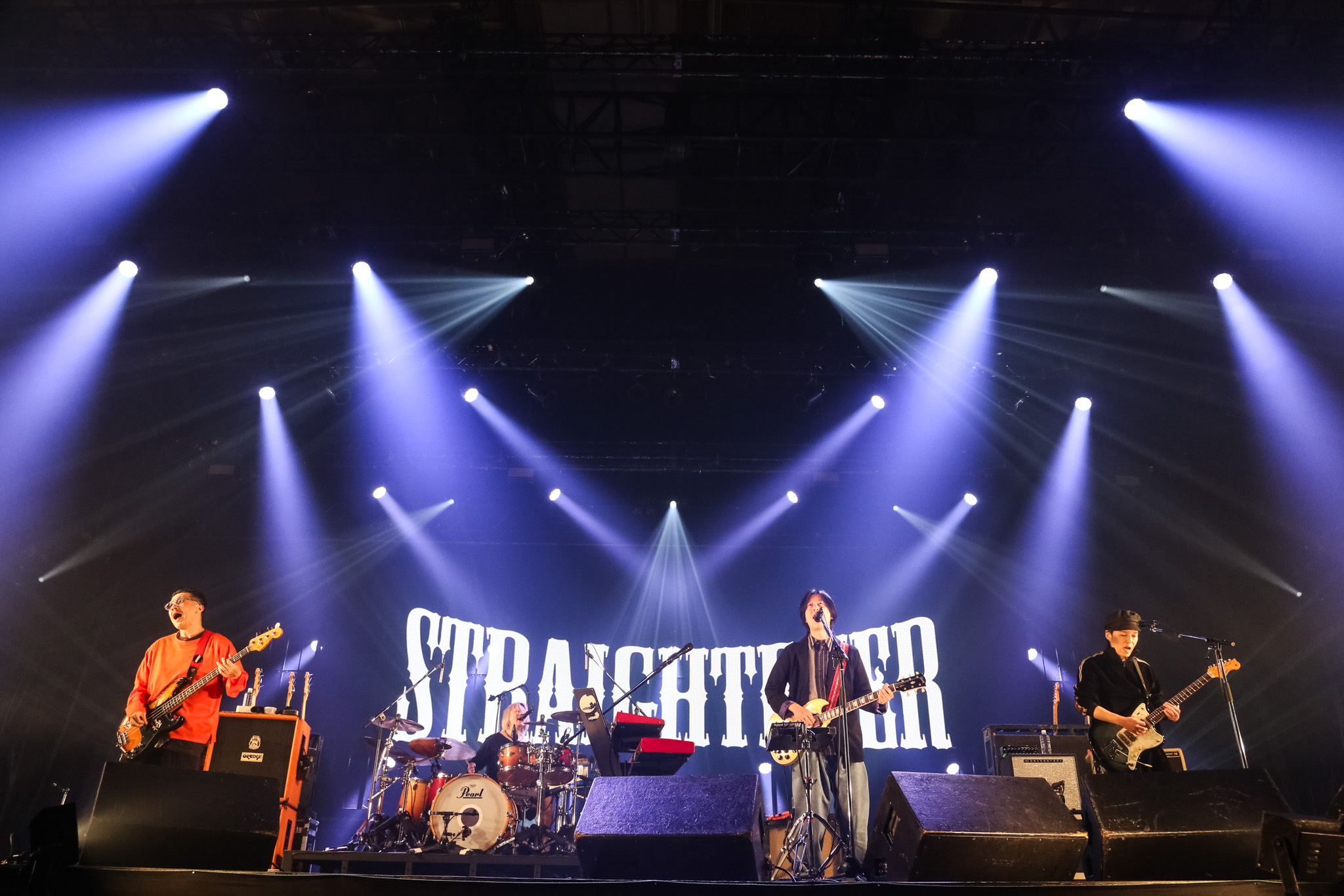 舞台後方に「STRAIGHTENER」と大きくバンドロゴが映し出される。ナカヤマシンペイ(Dr)は椅子の上に立ち、まるで刀を抜くようなパフォーマンスを。もちろん祭ではあるが、戦に挑むような気合いが誠に格好良い。ホリエアツシ(Gt.V)が「今年もロック鳴らし納めに来ました!」と高らかに宣言して、1曲目「Melodic Storm」へ。