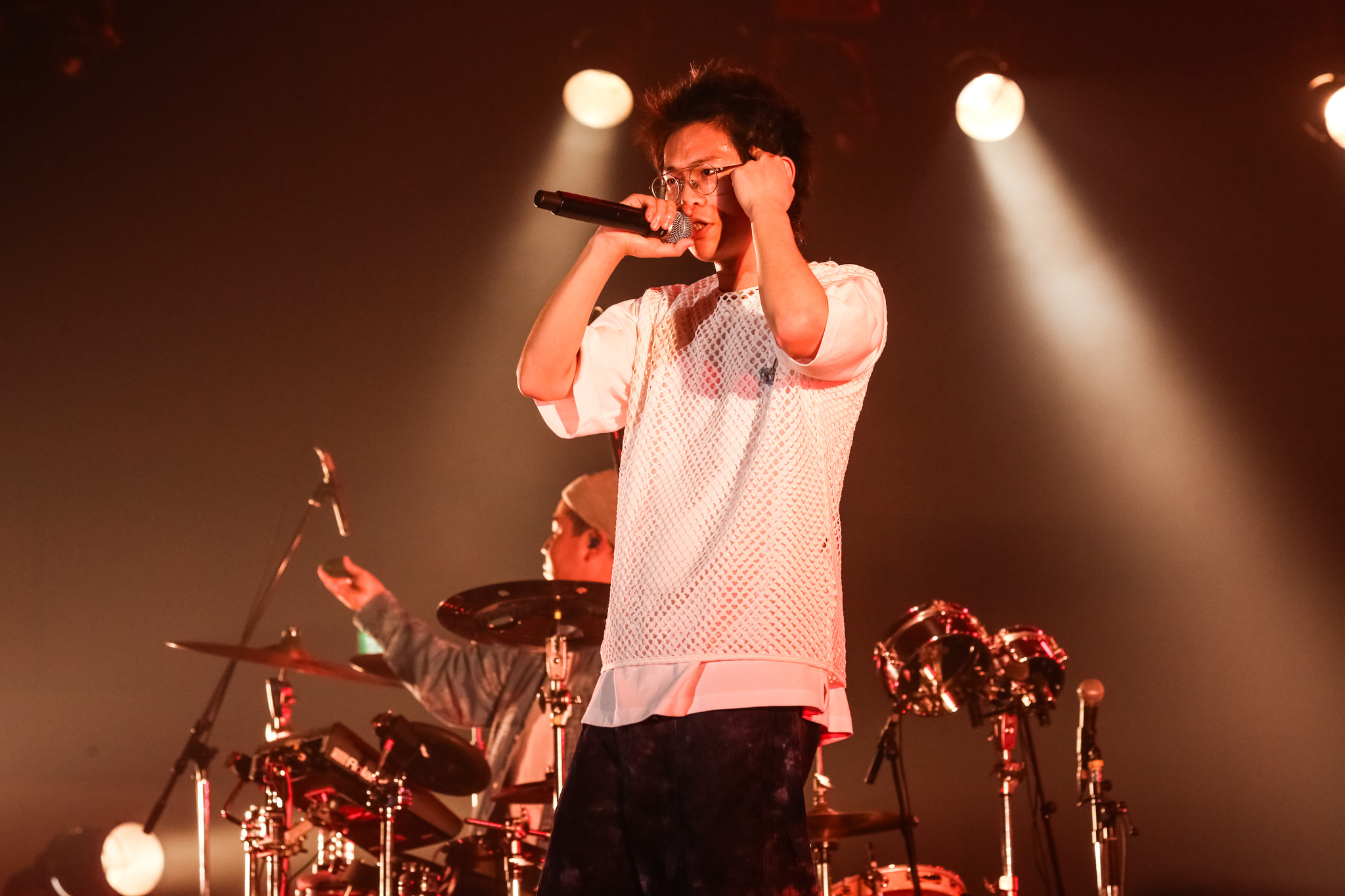 これぞエモーショナルというサウンドに惹き込まれる中、日向秀和(Ba)がサングラスを取って舞台の床へと投げる。ただこちらは夢中に観ているだけだし、何気ない一挙手一投足だが、より惹き込まれるしかない。