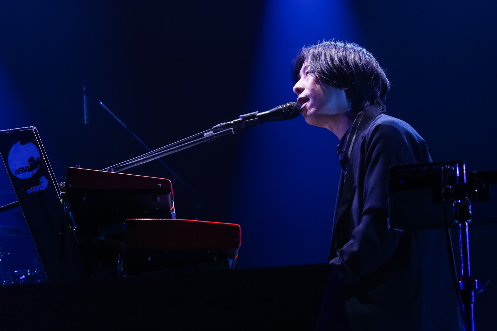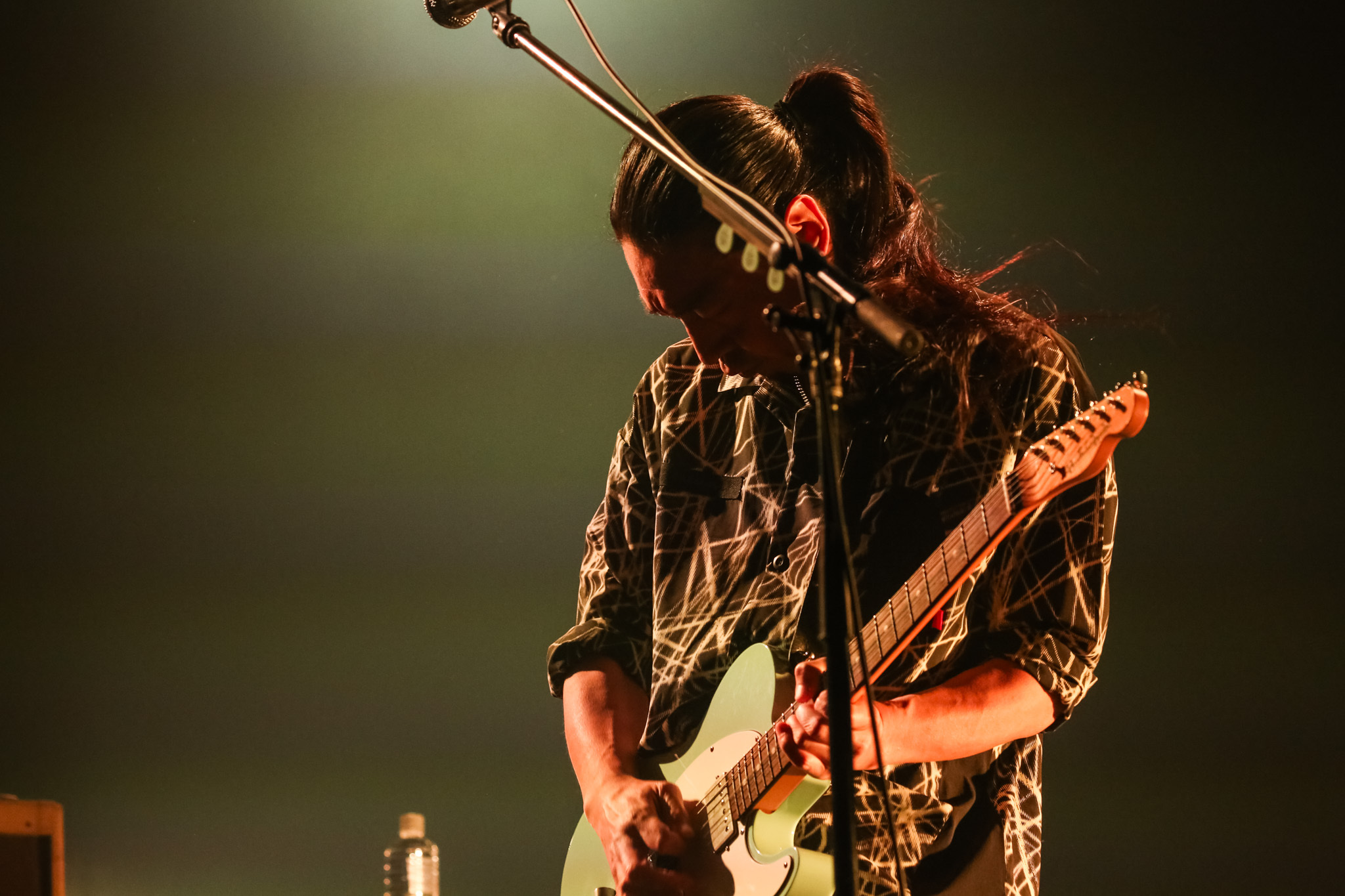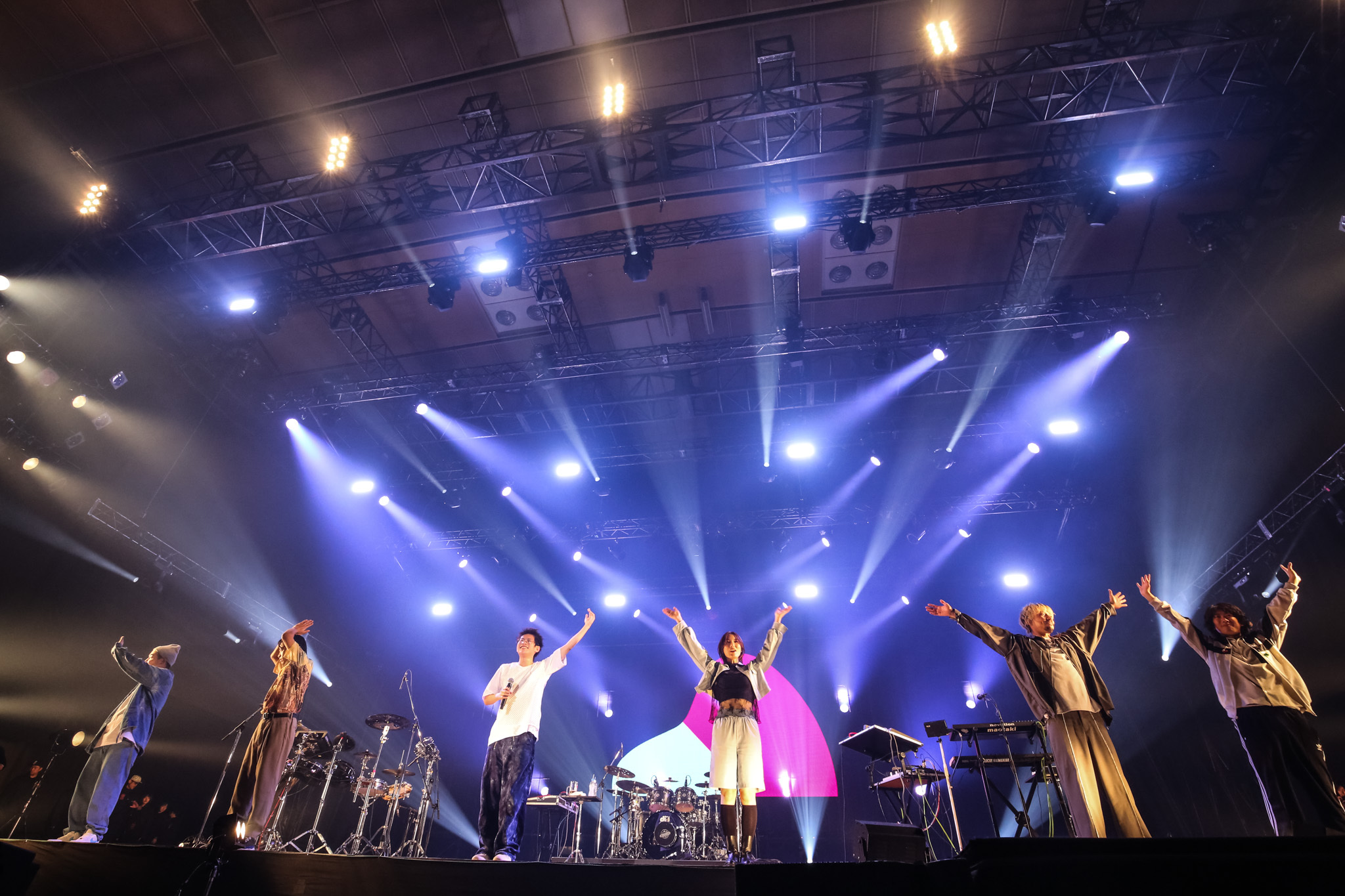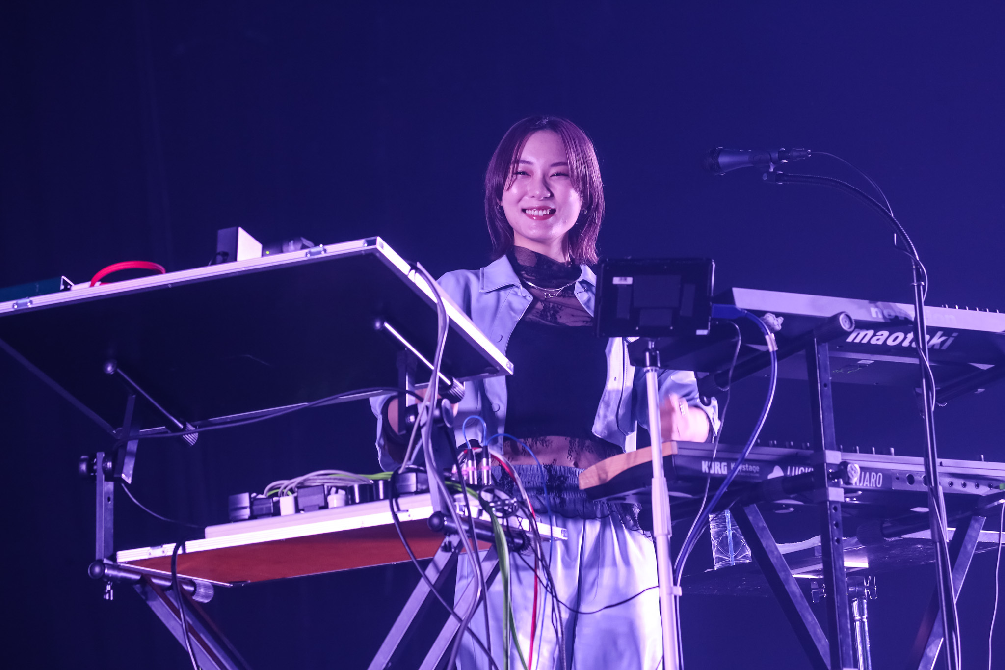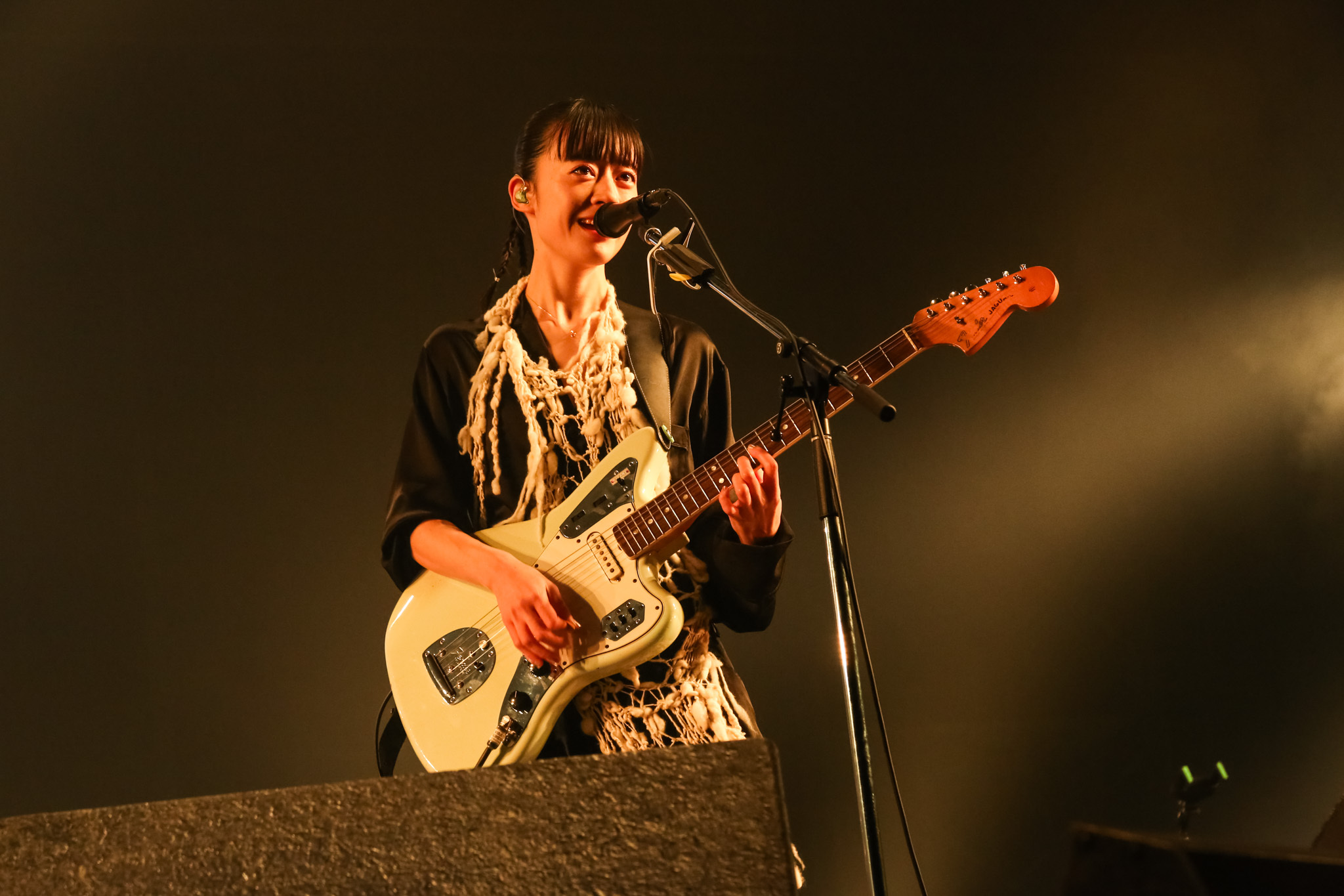 そこからはラテンの香り漂う「KIDS」を皮切りに「エモめの夏」、「かけおち」、「踊りの合図」などラテン〜ボサノヴァ〜ハウスが混沌となって夜のクラブモードへ。観客を踊らせる空気にスーッとグラデーションをつけるパフォーマンスは、さすが巧みだ。ラストはメロウな空気感も心地いい「メロディライン」&「HOUSE」でビタッとシメる。無音の時間を作ることなく11曲を歌いつないだ40分。ブラボー!