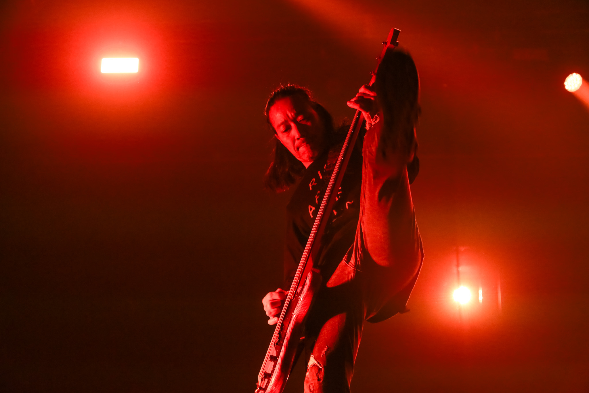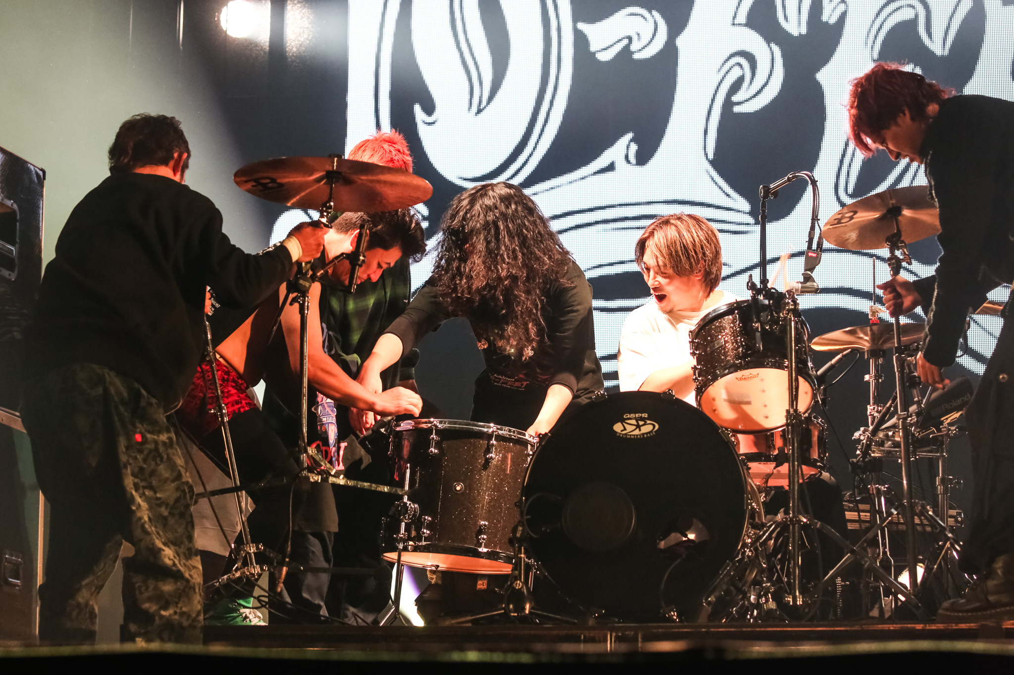 そして、2024年1月1日に起きた能登半島地震に触れ、「時を選べない。だからこそ、今日も全てをかけて。全力で『RADIO CRAZY』に!」、一度切りのこの瞬間、このステージ、全力で立ち向かうことを告げた途端、全身に雪崩れこんでくるようなMAKOTO(Ba)、RONZI(Dr)のリズムが鼓動を加速させる。続く「賽の河原」では爆ぜるリズムがなぜかこの日は優しく感じたけれど、「SEE OFF」ではまた一転して狂騒へと駆けていく。