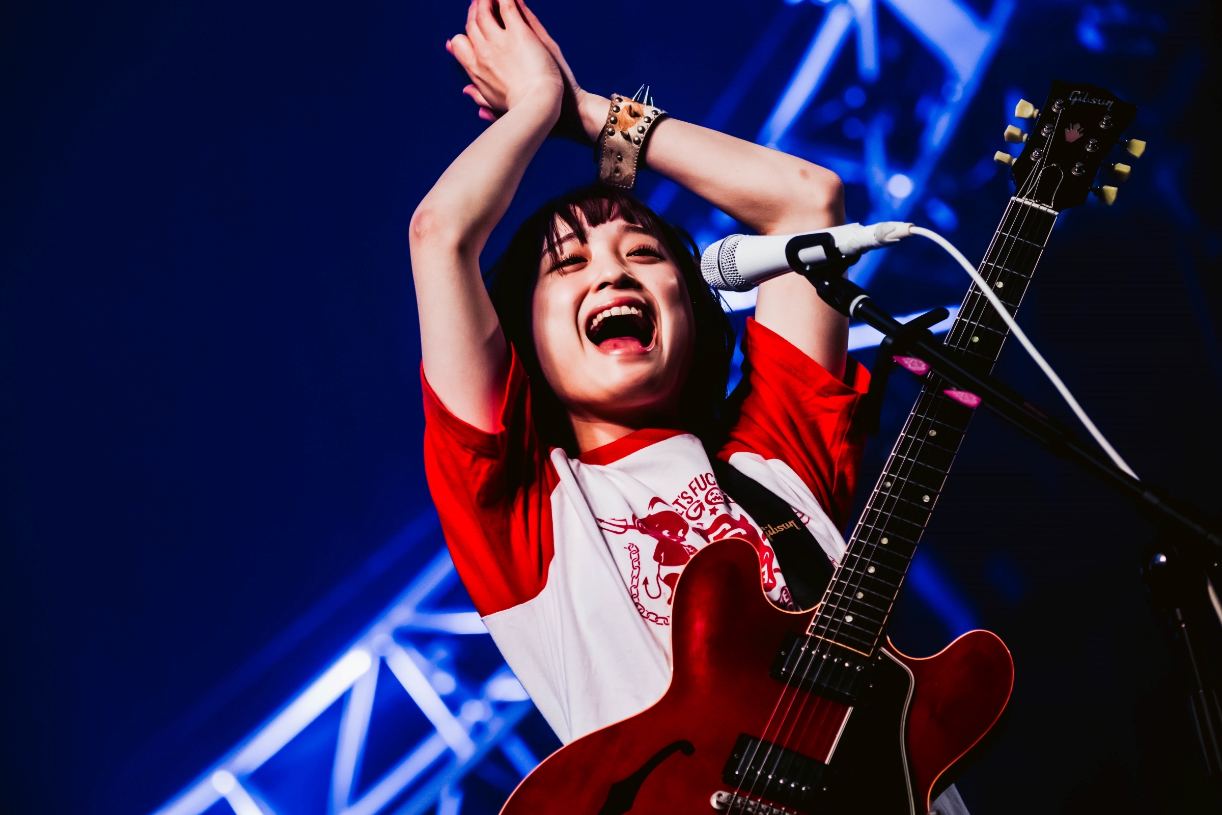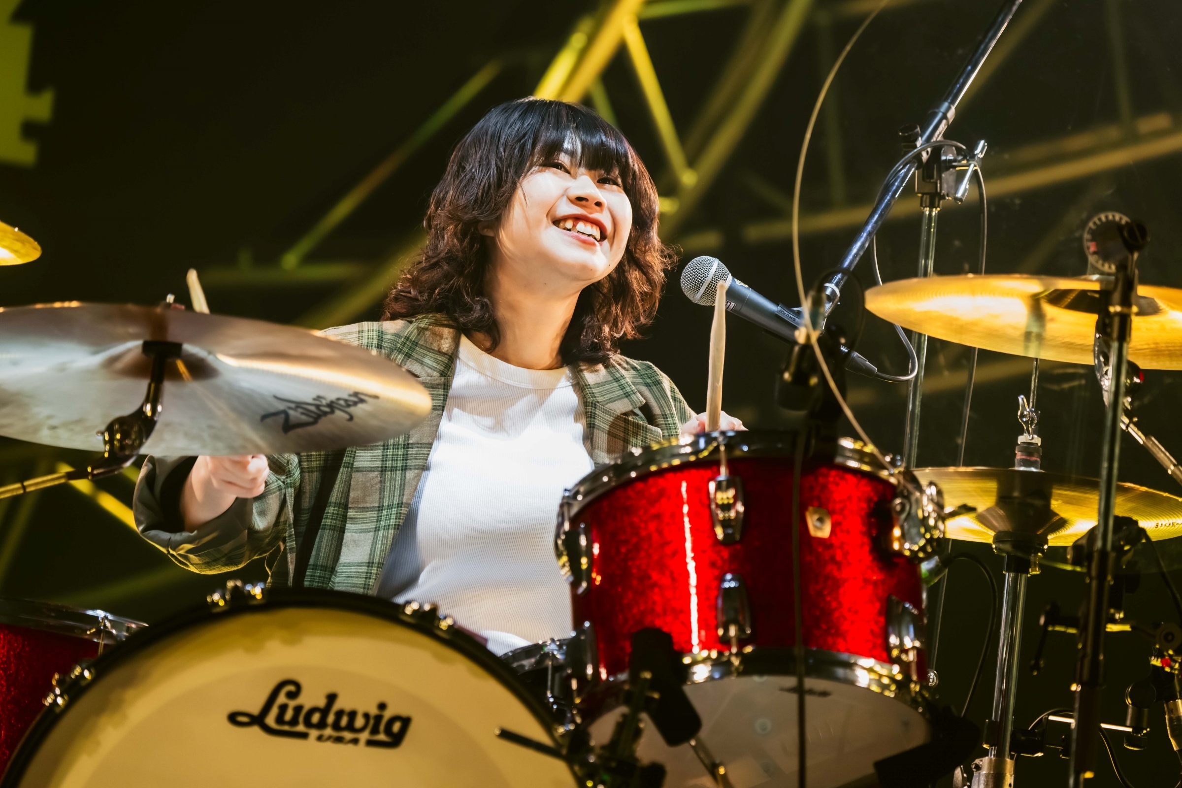なち(Vo.Gt)が「1年間お疲れ様。みんな偉かった!」と全員を労い、「作戦会議」から快進撃を開始。オーディエンスが発する<オーオーオー>のコールも響き、ご機嫌なビートは「ナイスなガール」へと続く。頭上でたくさんの手が踊り、次の「ポテサラ」ではより楽しく。