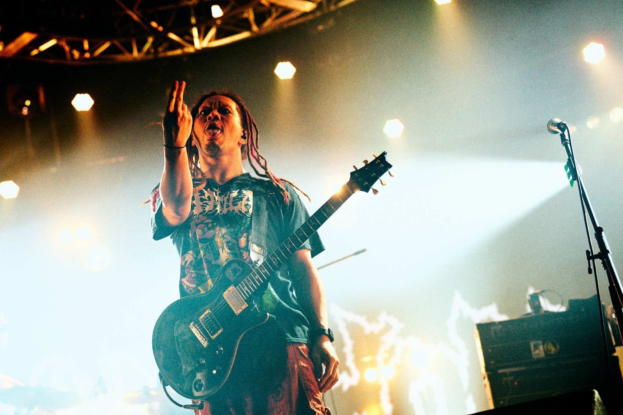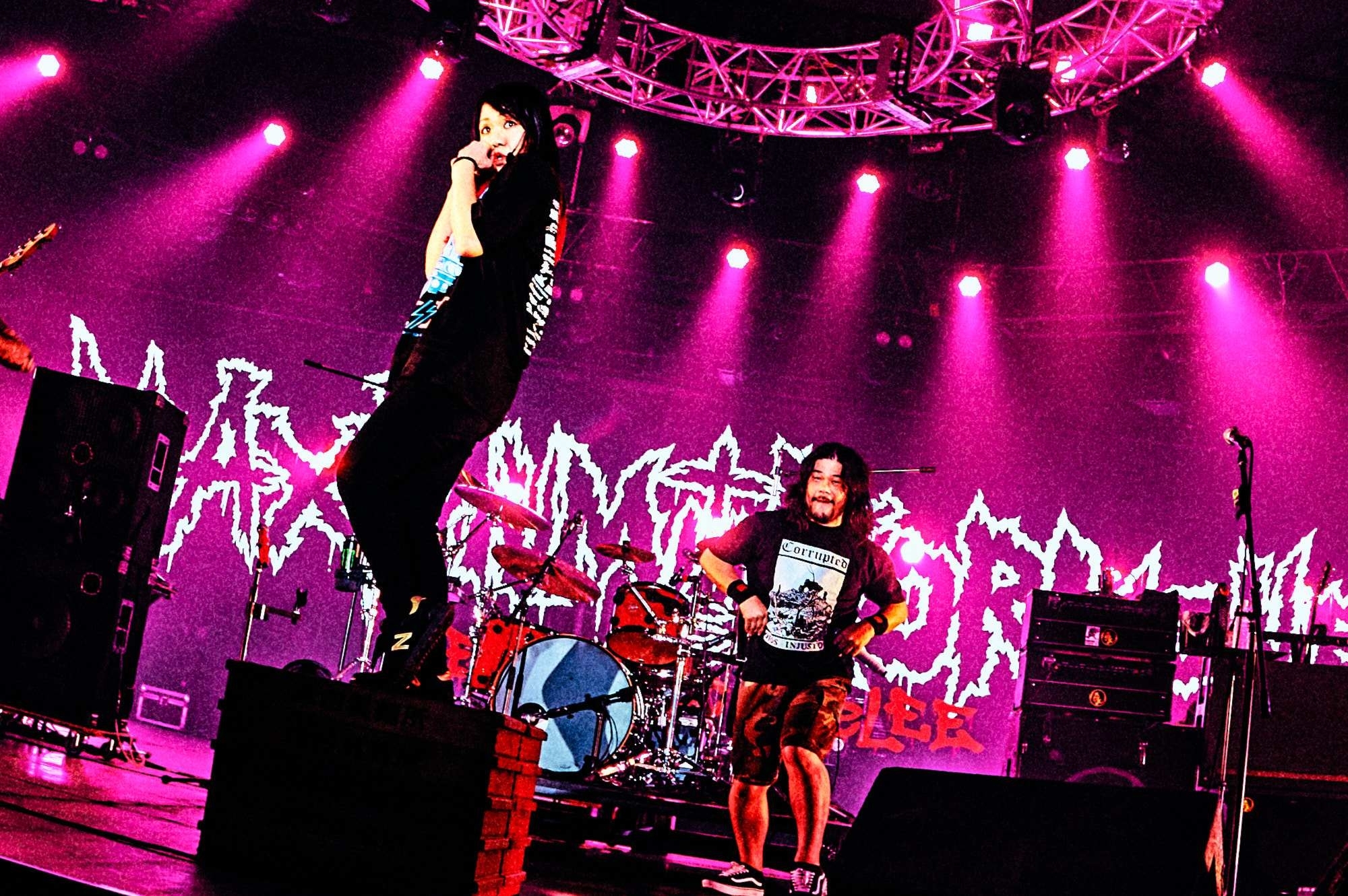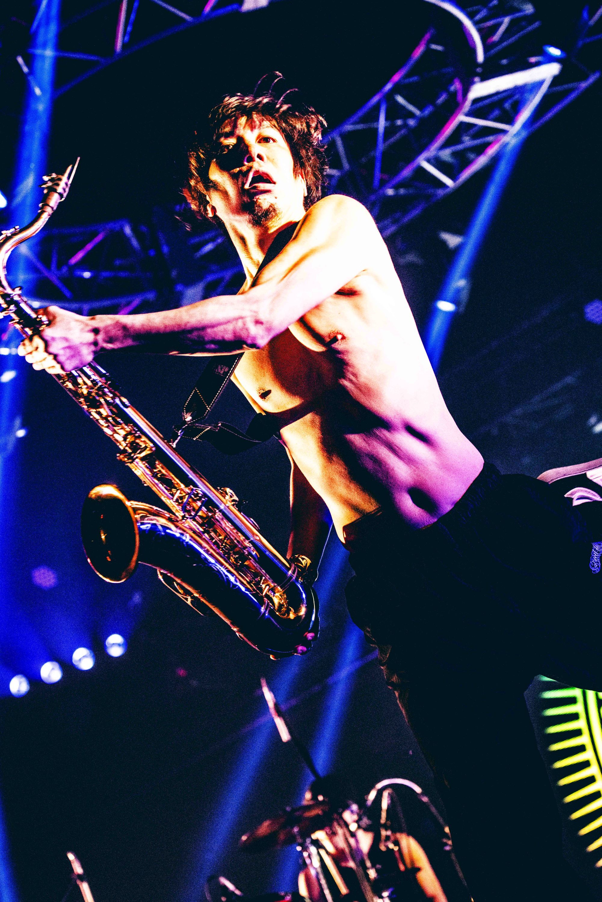 とにかく何もかもがデカくて重くて、体が気圧されるような感覚すらある。続く「アバラ・ボブ〈アバラ・カプセル・マーケッボブ〉」ではマキシマムザ亮君(歌と6弦と弟)の飴と鞭な、極悪感あるギターサウンドから柔いサウンドを急展開に詰め込んでいき、フロアを狂騒へと誘い込む。