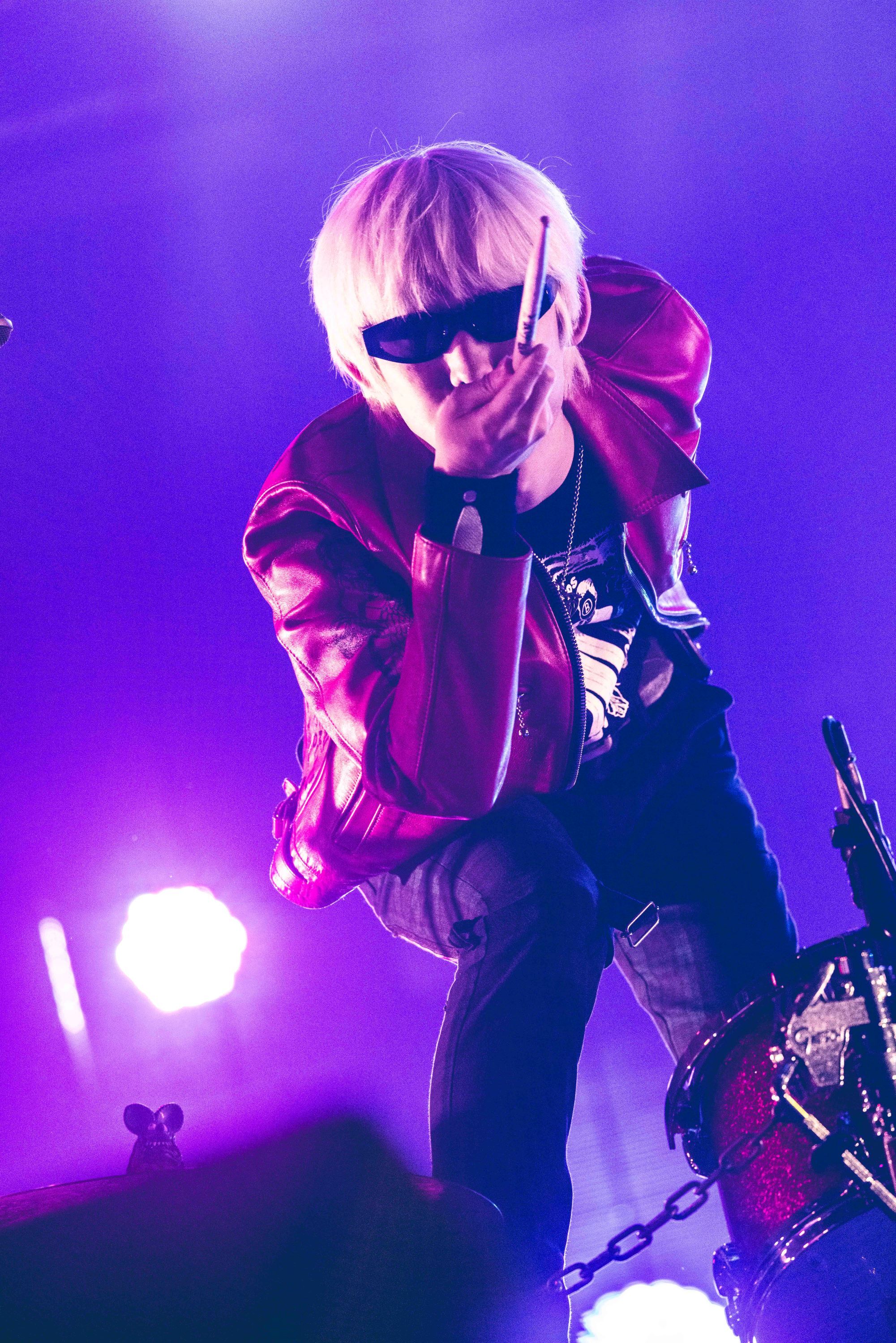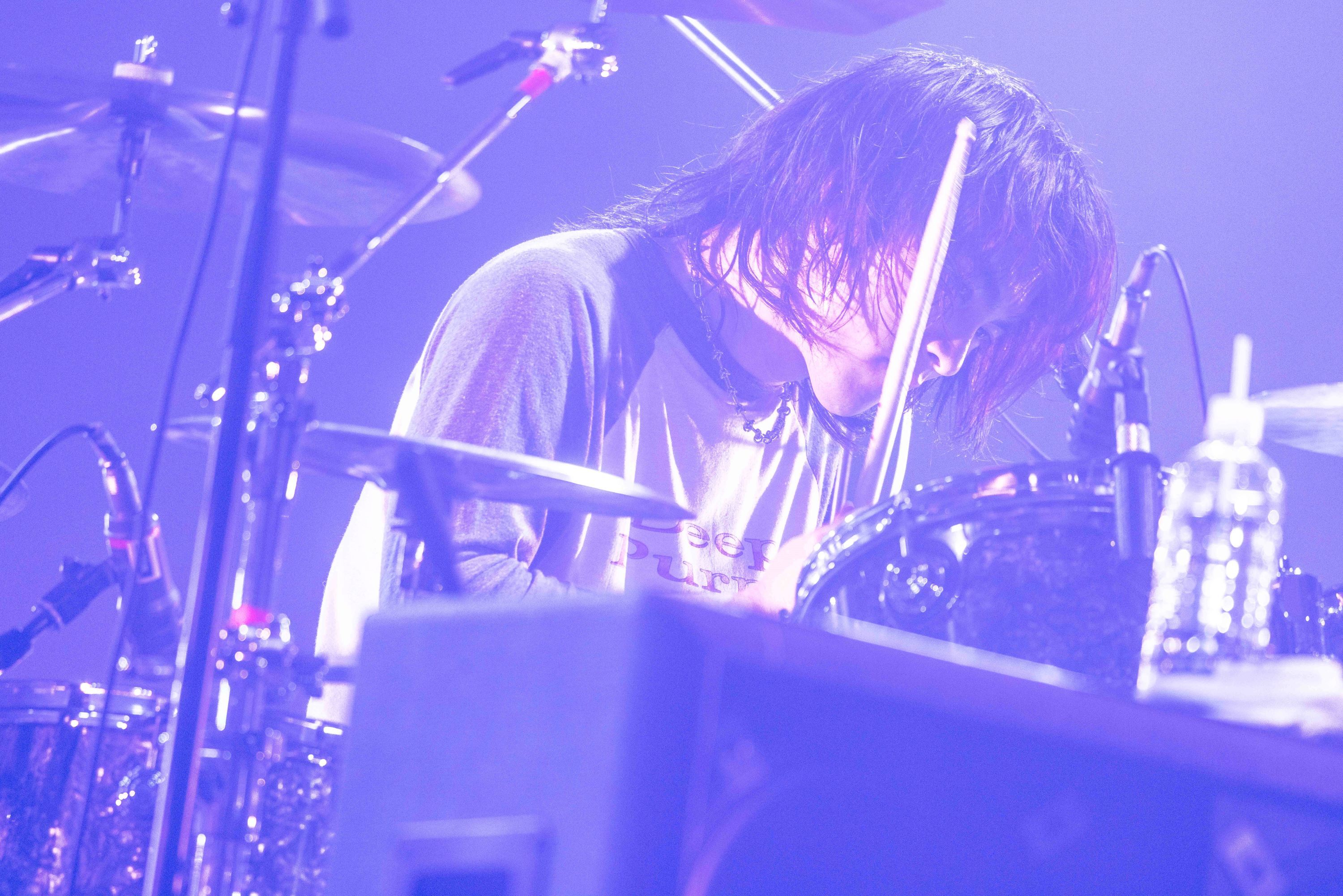 「さぁ、お前たちの戦闘能力をオレたちにブツけろ!」とくれば、投下される楽曲はもちろん「「F」」で、上ちゃん(4弦と歌とDANGER×FUTOSHI)のうねるベースラインを合図に、フロアが一斉にヘッドハンキングで応戦していく。互いの戦闘力を競うような音と拳のぶつかり合い。乱れ打つナヲ(ドラムと女声と姉)のビートが体に重く響く。