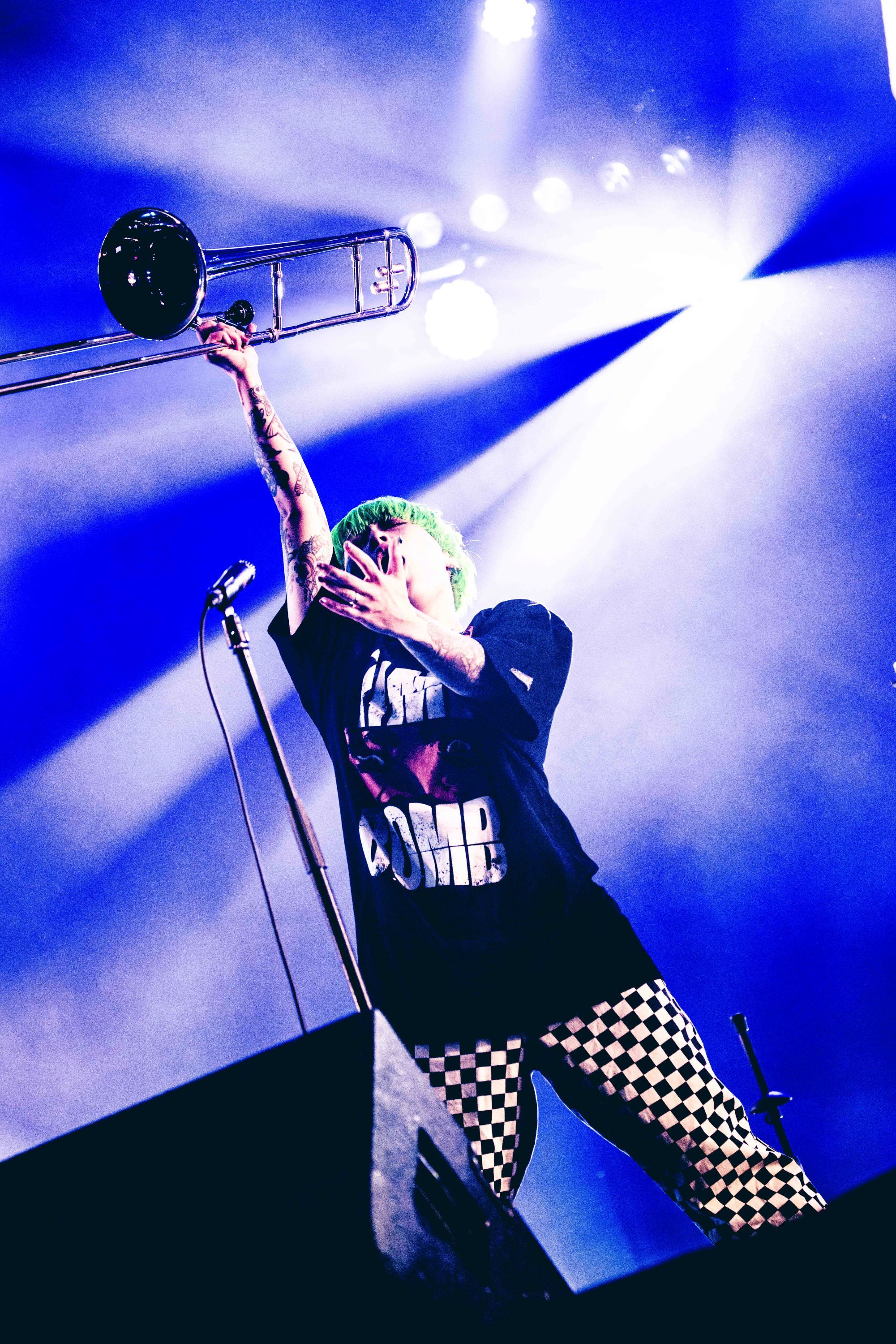 Z-STAGE初登場となるのがHEY-SMITH。猪狩秀平(Gt)が拳を高く突き上げ、突き抜けるホーンをキッカケにフロアの熱気が瞬時に上昇。「Say My Name」から始まったステージは曲のタイトル、そして「オレたちが大阪のHEY-SMITHです!」と吠えた言葉のまま、地元・大阪でのライブはバンドもオーディエンスも互いに油断禁物、本気のぶつかり合いがここから始まっていく。