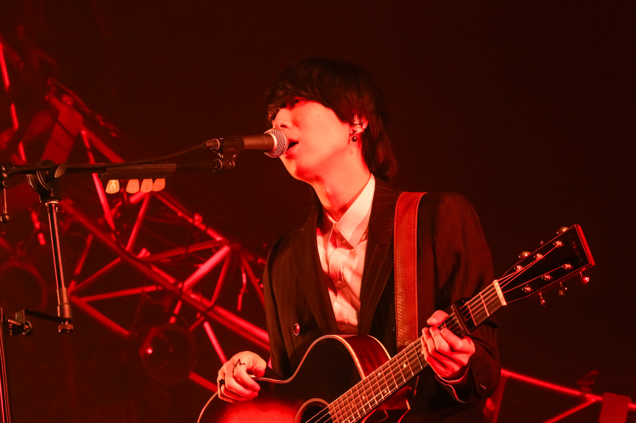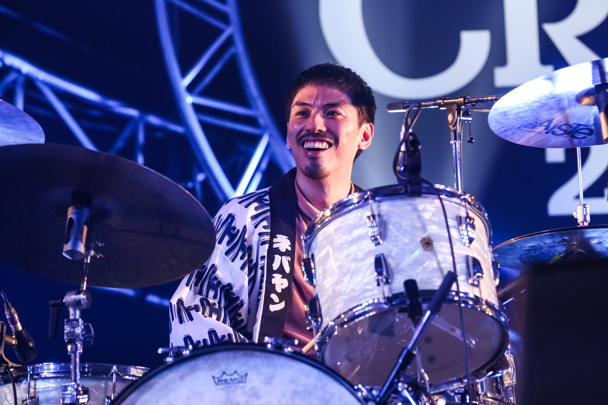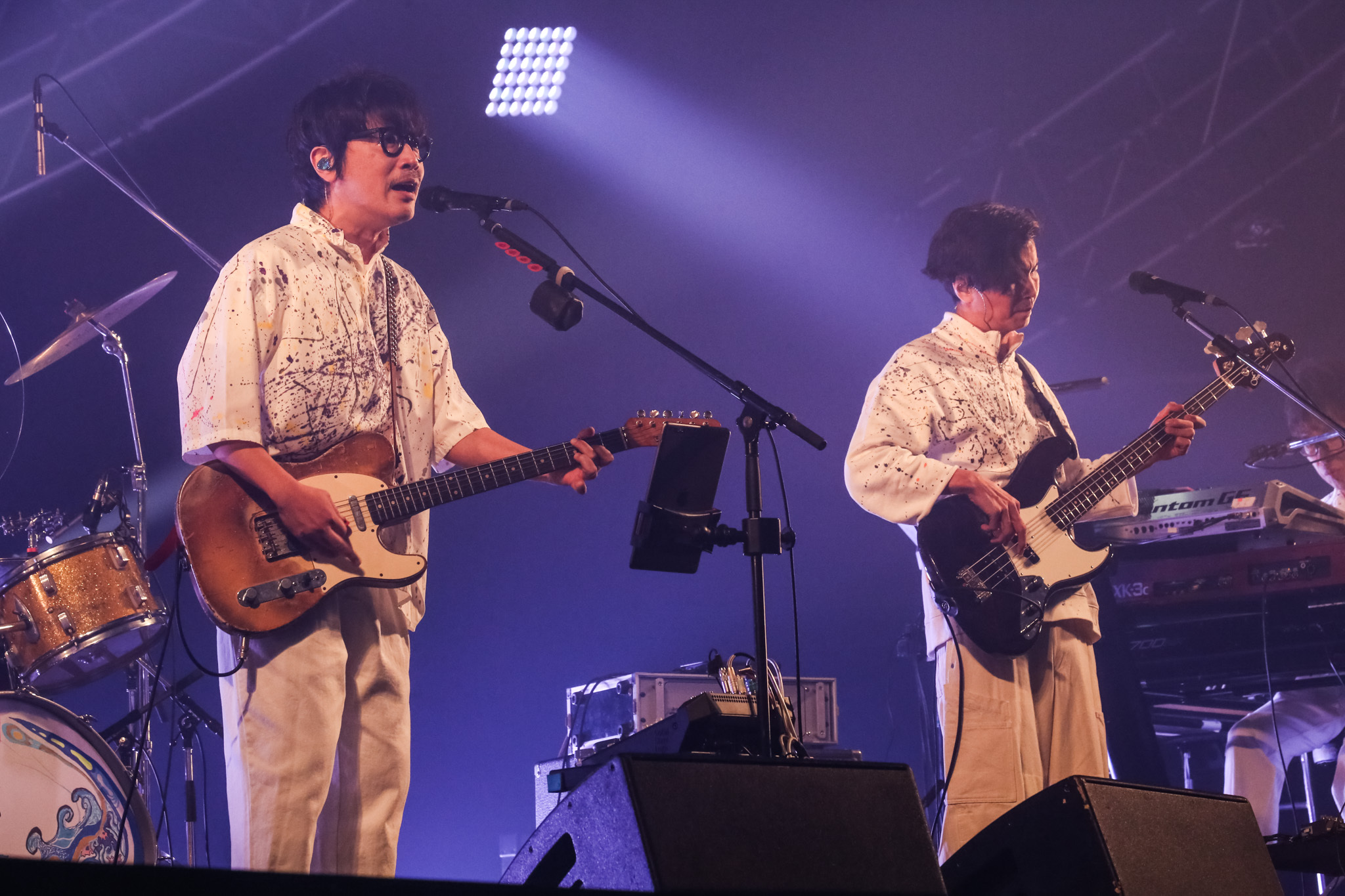 本番かと見間違えるほどの本意気なリハーサルから目が釘付けになる。サポートメンバー含め全員が白を基調とした上下の衣装で、上着には絵具をペイントした様なデザインが施されている。1曲目から代表曲「東京」が鳴らされたことに驚いてしまったし、FM802ヘビーローテーションに選ばれたのが1998年10月と約26年も経っていることにも驚いてしまう。そして、ひたすら聴き入ってしまう。観客も手を上げたりもせずに、ひたすら体をゆっくりと揺らして聴き入っている。良き音楽の極みとでも言おうか……。