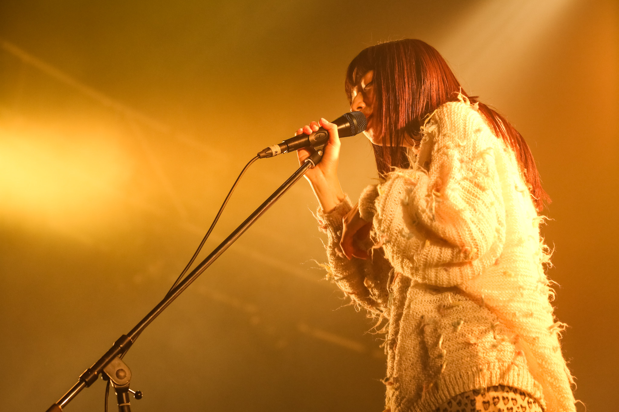 爽やかな疾走感が気持ちいい初期曲「fever」を挟み、井上が関西でこんなに応援してくれる人がたくさんいるとわかって嬉しい1年だったと語った「透明」へとつなげる。バンドでありながらゆったり柔らかく丸みのあるサウンド、井上のほわりと溶け込んでいくような歌声や息遣いも冬の朝によく合う。そこからポップチューン「Young life」への切り替わり、メランコリックな気持ちをつつく「brighter brighter」を披露。あぁ、あったかいコーヒー飲みたいなぁと思わずにはいられない。