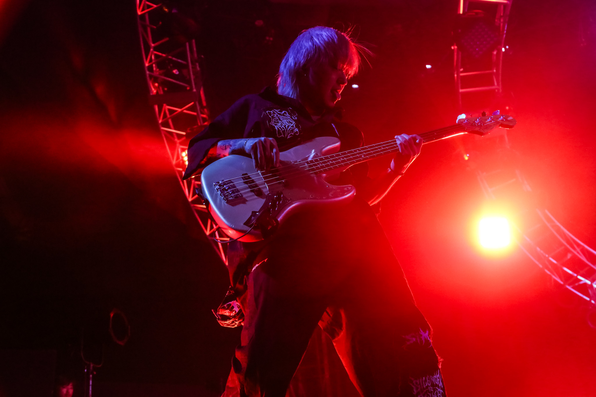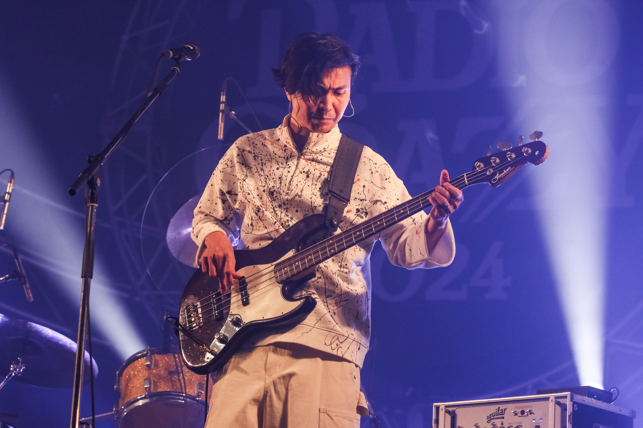 この日のR-STAGEのトリを飾ったのは、3ピースバンド、w.o.d.だ。Ken Mackay(B)のうなるベースを合図に投下された「イカロス」のスリリングなグルーヴに、大きな歓声をあげる観客たち。