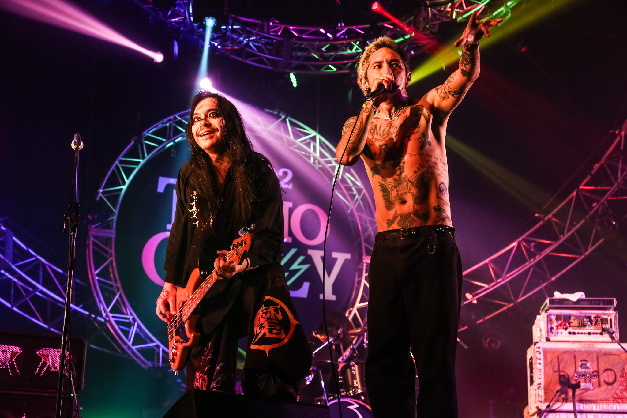 スカダンスを踊りながらガンガンに圧をかけていくSIN(Ba)とSHOW-HATE(Gt)はフロアのお手本と形容するのがドンピシャで、会場のどこを見渡しても踊りまくっている人ばかりの光景は壮観。MAHも身体所作が増加した印象を受けたが、端から端まで取りこぼすことなく一味に加えんとする意識が自然と顕在化したのだろう。