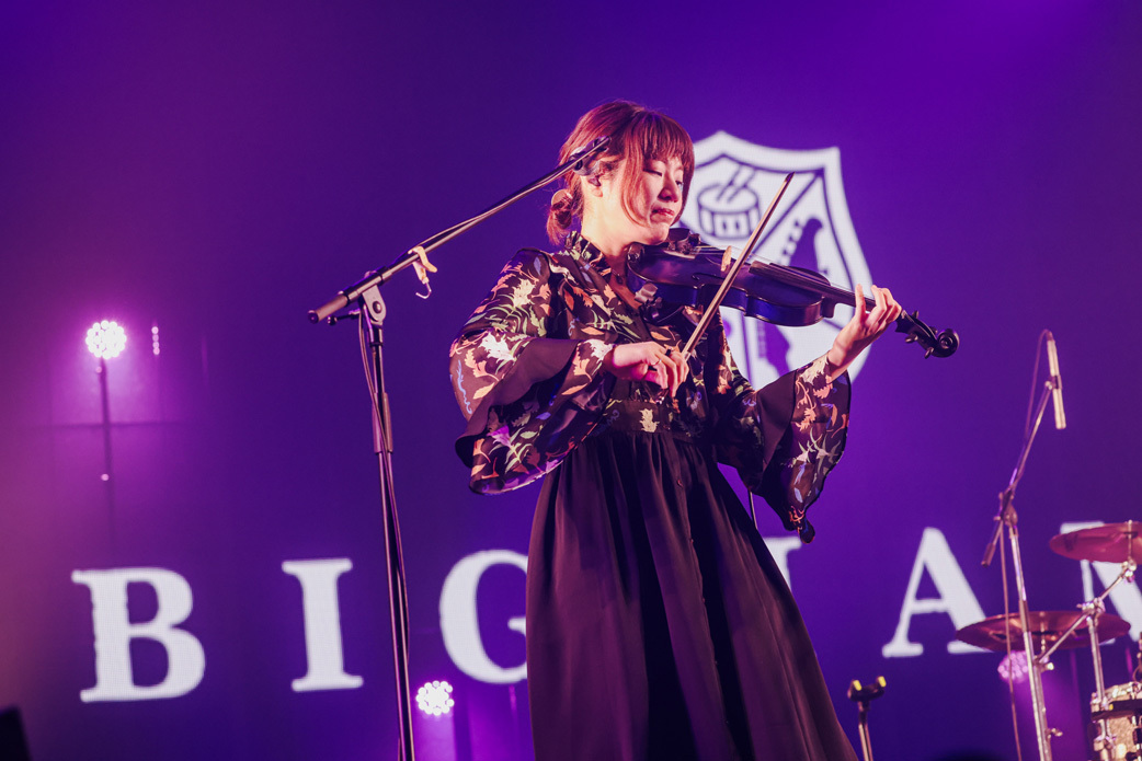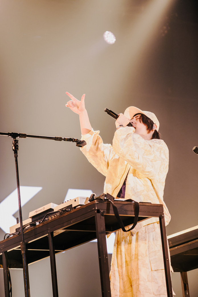 いざ、本番。白を基調とするセットアップの衣装、声の質感、キーボードの演奏姿、すべてが朗らか。圧倒的な陽である。「Winter Beat」では両手に耳を当てて歓声を要求し、「ウララ」では「この曲で今年のことを全部忘れて、来年への勢いになったらいいなって」と鍵盤を弾くアクションをより派手にする。会場中にひたすら手を振りまくる超絶ファンサービスも、ビッケらしい明るさに満ちている。