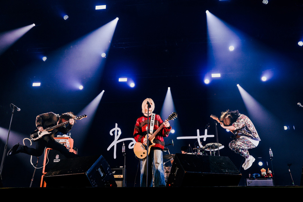 Maika(Ba.Vo)が2023年10月から1年にわたって『MUSIC FREAKS』(毎週日曜 22時~24時)のDJを担当し、FM802と縁も深いChilli Beans.が2日目のL-STAGEへ。リリースのたび、ライブを重ねるたびに新たな側面を見せてくれる3人。この日もぶっ飛んだ変則的サウンドでこれまでにない一面を爆発させた「cyber」で最新のモードを提示する。