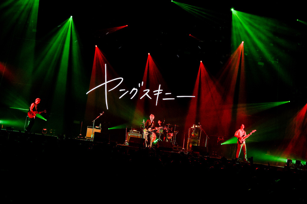 かやゆー(Vo.Gt)の「始めようぜ『レディクレ』! かかってこいや!」を号砲に、「ヒモと愛」でスタートしたヤングスキニーのショーは、そんな彼らのモードの総決算だった。