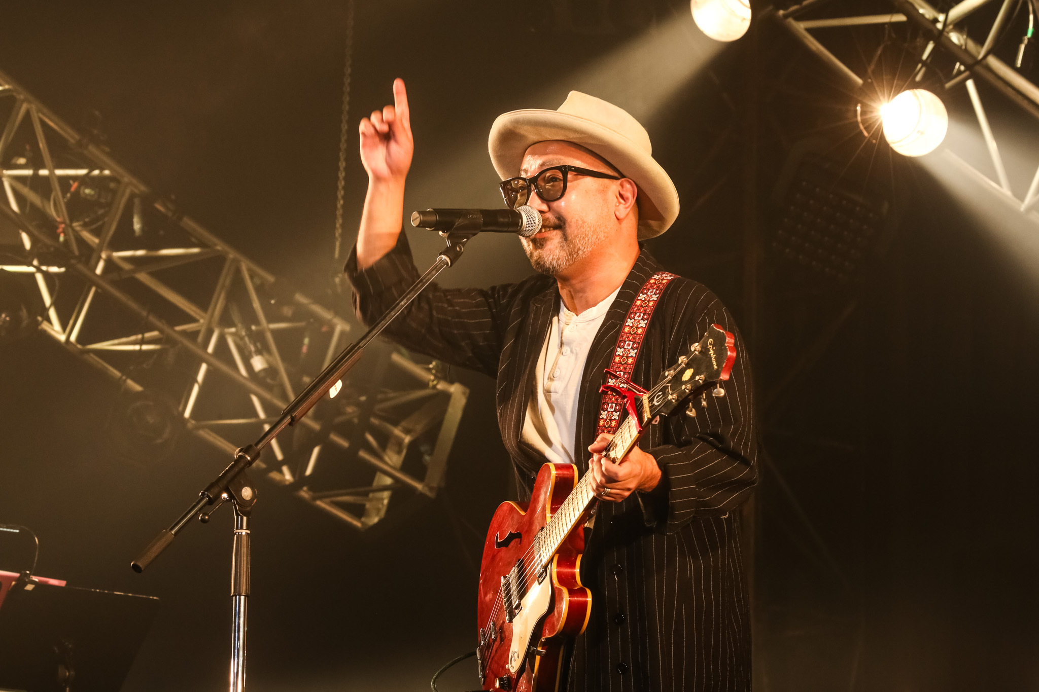 10年ぶりの出場であり、本日の最年長だという怒髪天。増子直純(Vo)の気合いが問答無用でも伝わってくる。サポートベースのグレートマエカワ(フラワーカンパニーズ)の演奏もノリにノッテいる。裏で別のステージに出ているレキシの観客を「後から稲穂を持った奴らも稲刈り終わって来るのでは」と軽快にイジる。40周年の2024年にメンバーがひとり抜けたことも軽妙に触れていたが、何があっても変わることなくただただ真っ直ぐにロックンロールを全身全霊で鳴らすのみ。