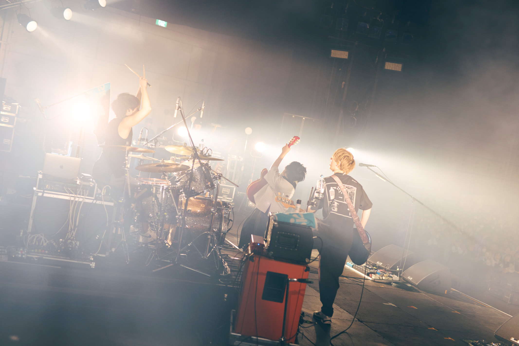 「爪」では彩楓の強度のあるドラミング、「102号室」では楓華のベースラインが観客を扇動。紬衣が「バンドとして、一人の人間としてまだまだかもしれないけど、ここまでやってきたこと、2024年にやってきたことをここに全部置いていきます」と宣言すれば、彩楓も「すごいよね」とたくさんの観客が集まったことに喜び、「前回はAntennaに出させてもらって。こんなに朝早くから観に来てくれてありがとうございます」とバンドの急成長を実感しているようだった。