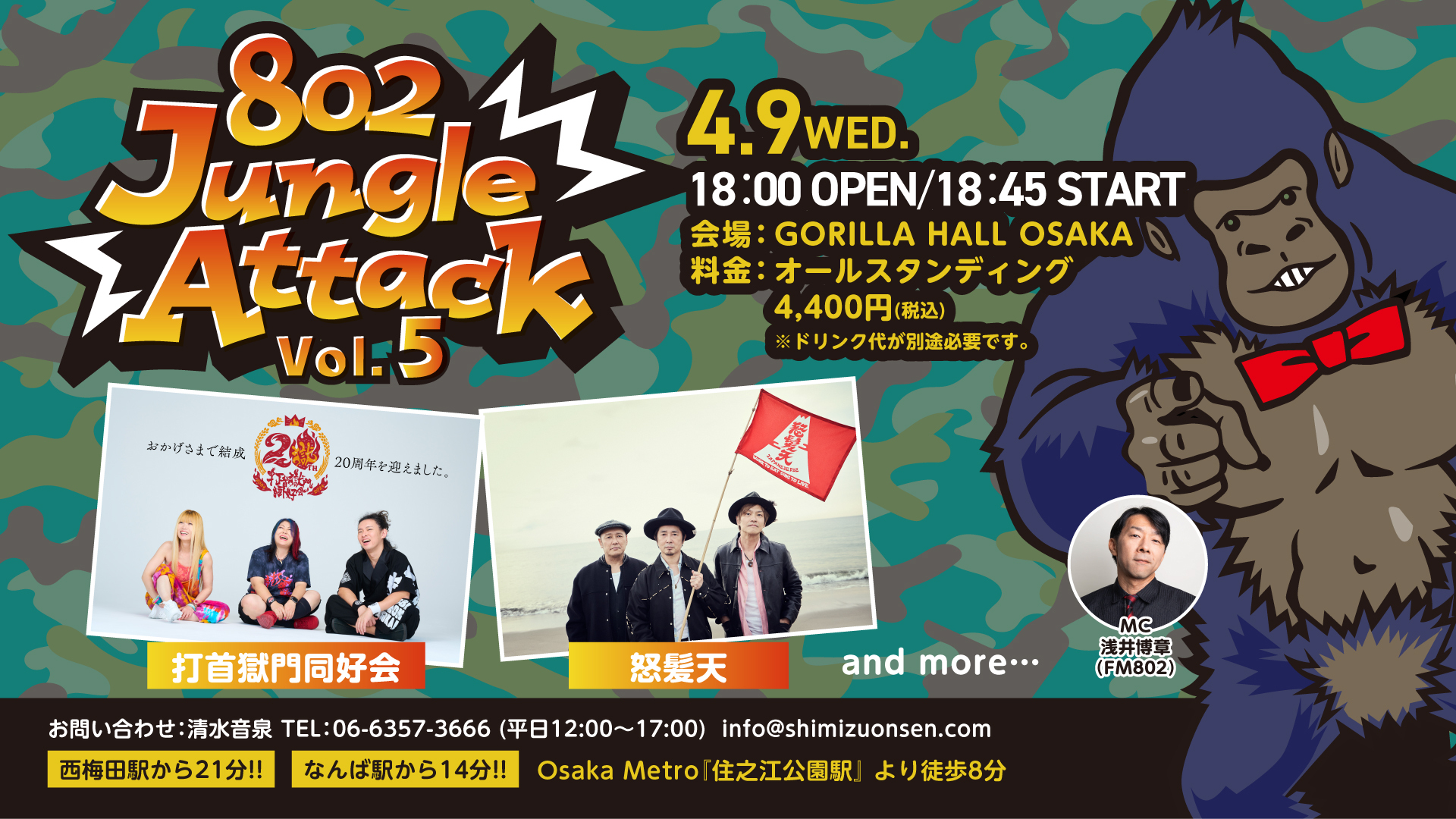 『802 Jungle Attack Vol.5』が4月9日(水)に、GORILLA HALL OSAKAにて開催される。出演は打首獄門同好会、怒髪天の2組。