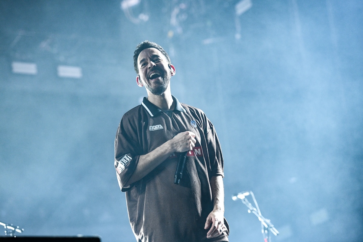 映像が流れた後には、「Numb」と「Numb / Encore」のマッシュアップ・バージョンを披露。青いレーザーの光が印象的で、観客に「歌って!」とマイクが声をかけ、会場が大合唱で一つになった。「In the End」ではマイクとエミリーがアリーナ席に飛び込み、観客の至近距離でパフォーマンスを披露した。そのあとも怒涛のヒット曲ラッシュは続き、「Faint」の演奏で本編を終了させた。