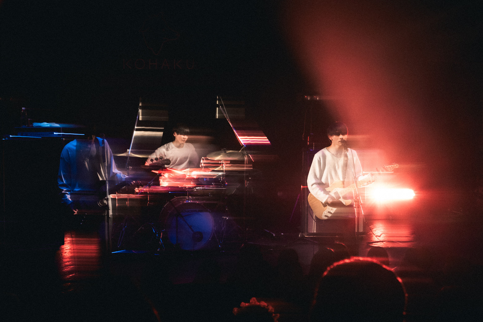 アンコールでは「俺らは北海道に住んでいるから、普通の話をできる機会もなくて。だから、そのためにライブをやろうと思っているので、またライブハウスに来て。どうかあなたの、俺らの生活が途切れず続きますように」と祈りと共に「ブローハイ」「アイボリー」を披露。余白とは、1年を振り返った時、すぐには思い出せない取り留めのない日々のこと。そんなありふれた暮らしへカメラを向けたKOHAKUの音楽が、温かく会場を包んでいた。