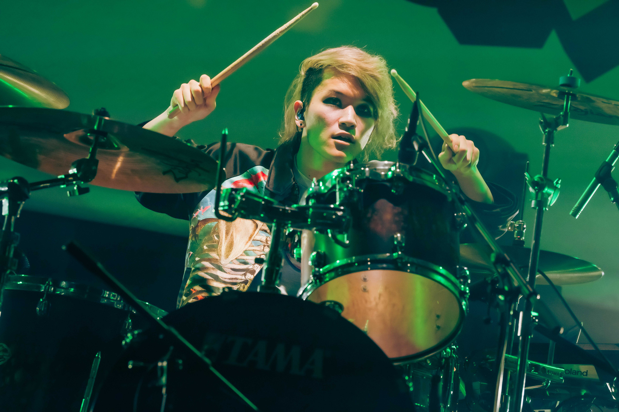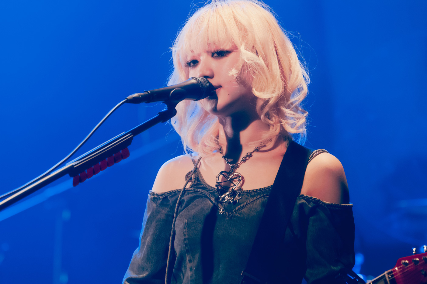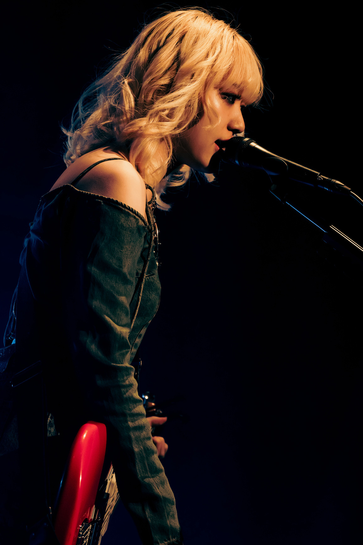 愛機のジャズマスターをかき鳴らす蓮月(Gt.Vo)のけだるいボーカルもクールで、ボリ(Dr)の重さと速さと正確さを兼ね備えたドラミングが終始ボトムを支えつつ、その後もダークでゴシックな「27:00」の疾走感に聴きほれたかと思えば一転、浮遊感漂う「悪夢のような」のはかなきポップセンスとダンスビートに踊らされるなど、若き新星のレンジの広さと底なしのポテンシャルに期待は高まるばかりだ。