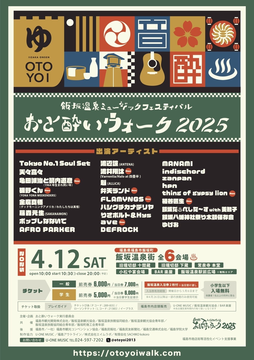 2025年4月12日(土)、福島県福島市飯坂町の飯坂温泉街6会場にて開催される音楽フェス『おと酔いウォーク2025』の第2弾アーティストが発表された。