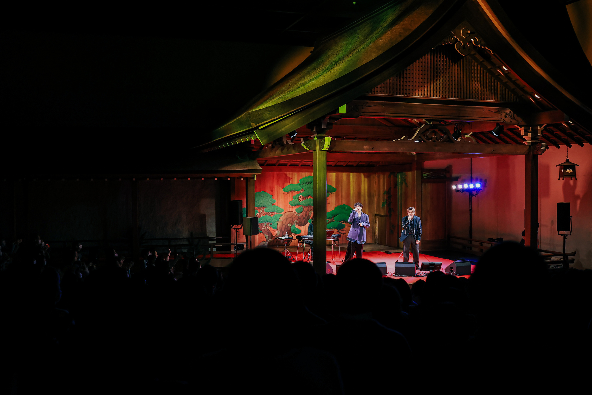 そしてフィナーレを飾るのは、来年デビュー25周年を迎えるCHEMISTRY。「月夜」でゆったりスタートを切ると、続いてデビュー曲「PIECES OF A DREAM」を披露し会場の盛り上がりは早くもピークに。人気バラード「You Go Your Way」では、楽曲と歌唱のパワーに人々は動きを止め耳を傾けた。しかし後半は「Play The Game」などアップテンポなナンバーを並べて客席を総立ちに。伸びやかなボーカルや見事なハーモニーに歓声も上がり、まるでホールのような状態で 2 人はゴールにたどり着いた。ライブのあとには大抜が“(スタンディングは大槻能楽堂の)90 年の歴史で初めて”と報告。なんと“歴史的快挙”を達成して『春の謡会 2025』は幕を下すこととなった。