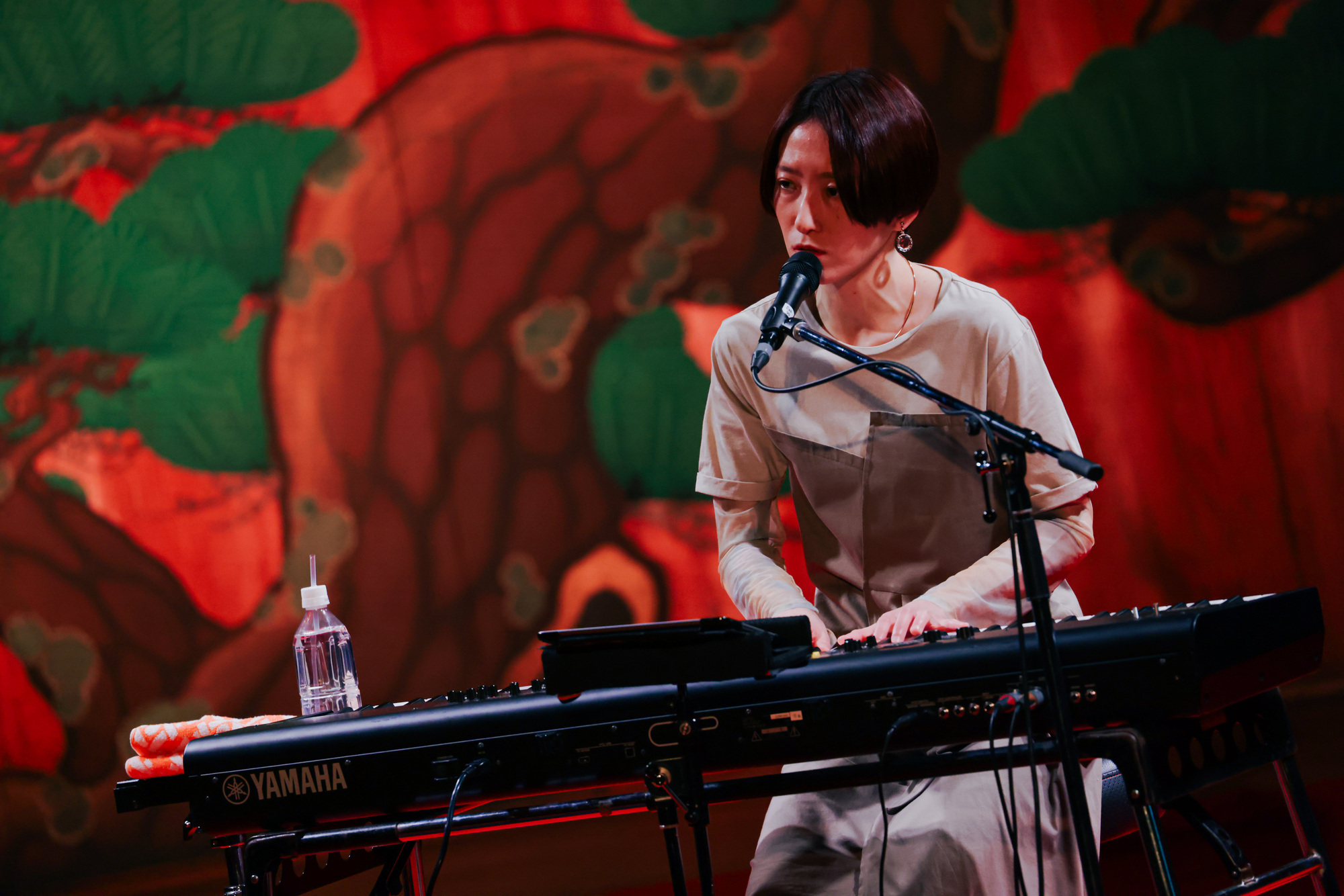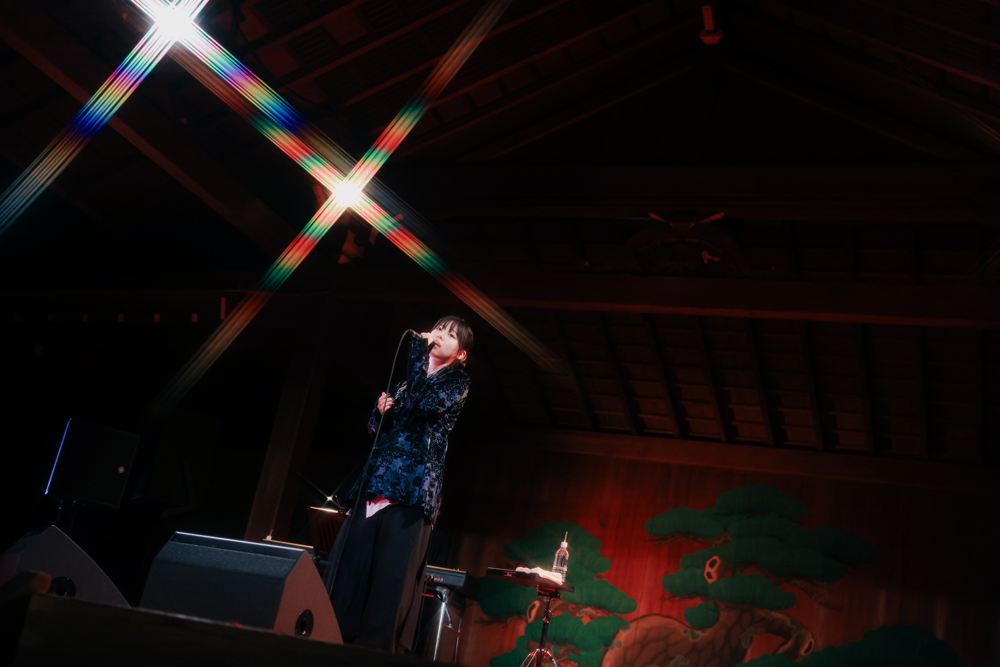 続く日食なつこの弾き語りは、まず能楽からイメージしたという7曲を。ポエトリーリーディングをはさみつつ、歌声もピアノも表情豊かで、「Misfire」のリズムが軽やかさをもたらせば、「泡沫の箱庭」は幻想的に……といった具合に7曲を通して一つの絵巻物を見るようだった。また最後に「水流のロック」をプラスすると、観客はクラップで呼応してアッパーな締めくくり。ライブ後には“人間の底力が試される芸術だなと思いました”と能楽の感想を述べ、“いにしえのカルチャーとの交差点”とこの日を形容した。彼女にとって『春の謡会 2025』は特別な体験だったに違いない。