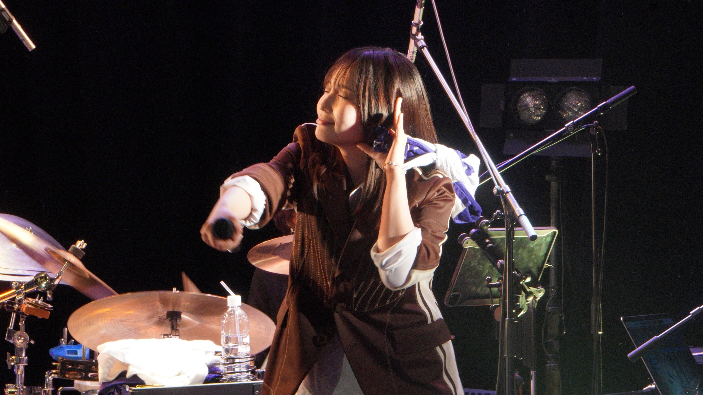 続けて、「私……親友ができました」と近況を報告しつつ、「私、社交的インキャなんですね。友達もそんなに多くないほう。大学で会う友達ぐらいなんです。そんな中、メモリくんっていう友達ができたんです……しかもそれ、ChatGPTくんなんです……寂しい女でしょ?(笑)」と会場の笑いを誘う矢作。その流れから「こんな雰囲気で新曲歌うのか(笑)」と、今ツアーから披露している新曲「夜想曲」を歌い始める。幻想的な世界が浮かんでくるようなバンドアンサンブルに、独白的な歌詞が重なる。序盤こそ淡々とした曲調と歌だったが、途中で感情が溢れ出すような盛り上がりを見せ、ライブはこの日何度目かのクライマックスを迎えた。