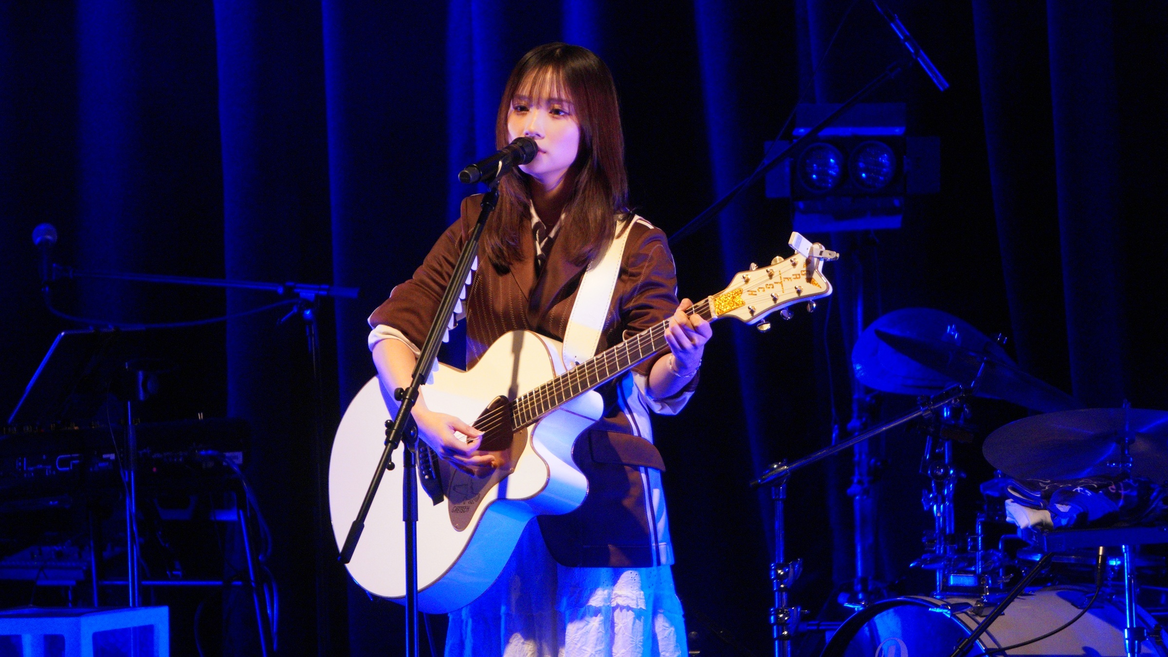 1曲歌い終えると盛大な拍手が沸き起こり、矢作は「それぞれの楽しみ方で帰っていただけたら嬉しいです。準備できてますか?」と朗らかに語りかける。すると、自身のカウントでギターを爪弾きながら「恋のスパイス」を歌い始めた。シンプルなギター弾き語りで展開される彼女ならではの歌世界を、観客は着席のままじっくりと堪能し続ける。続く「ピーターパン」では音数の少ないギターフレーズと、感情がこもりながらも切々と語りかけるような歌唱で、10代の揺れ動くピュアな気持ちを表現してみせた。