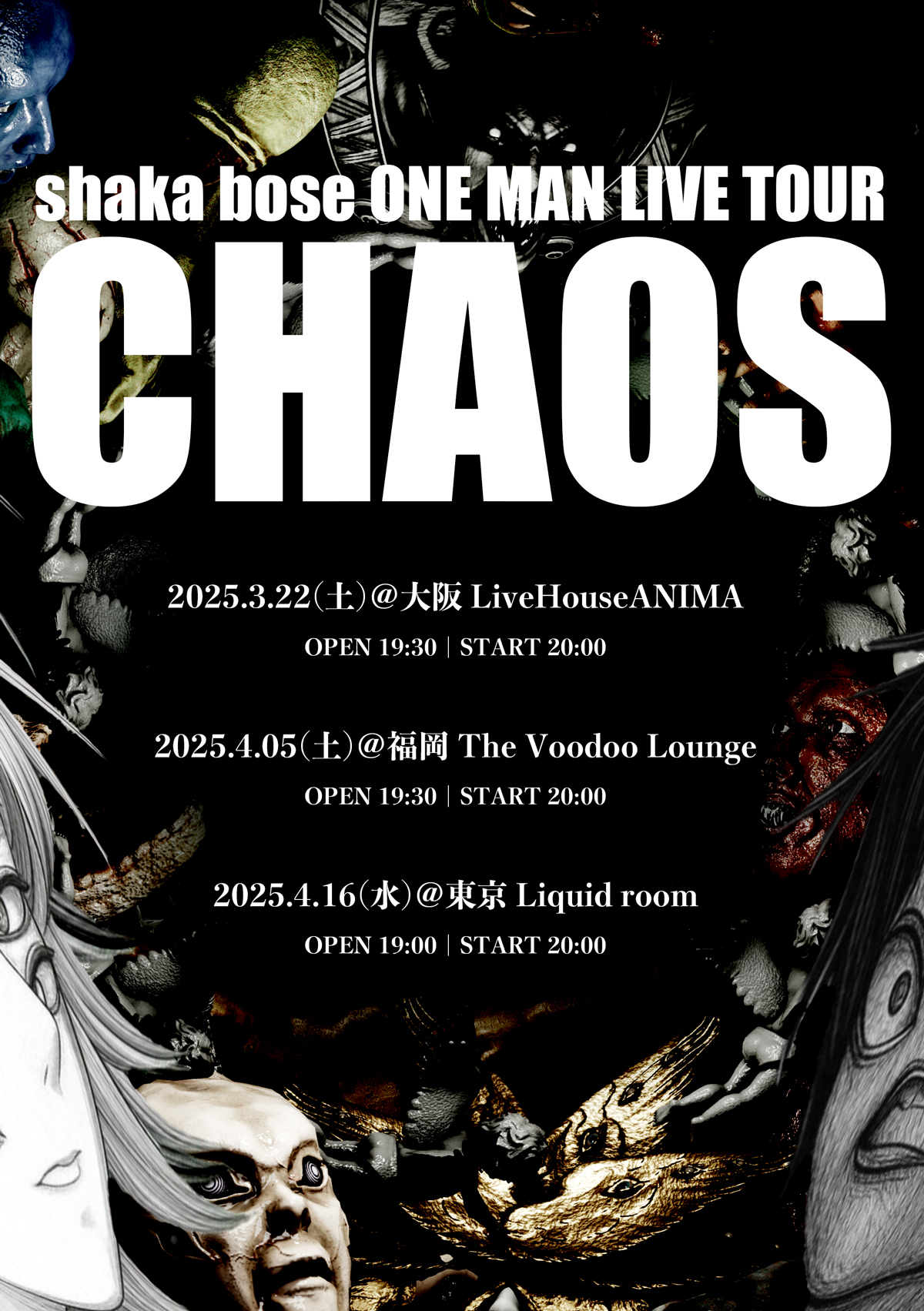 釈迦坊主が2月12日(水)にリリースした最新アルバム『CHAOS』を引っ提げ、全国3箇所のワンマンツアーを開催することが決定した。