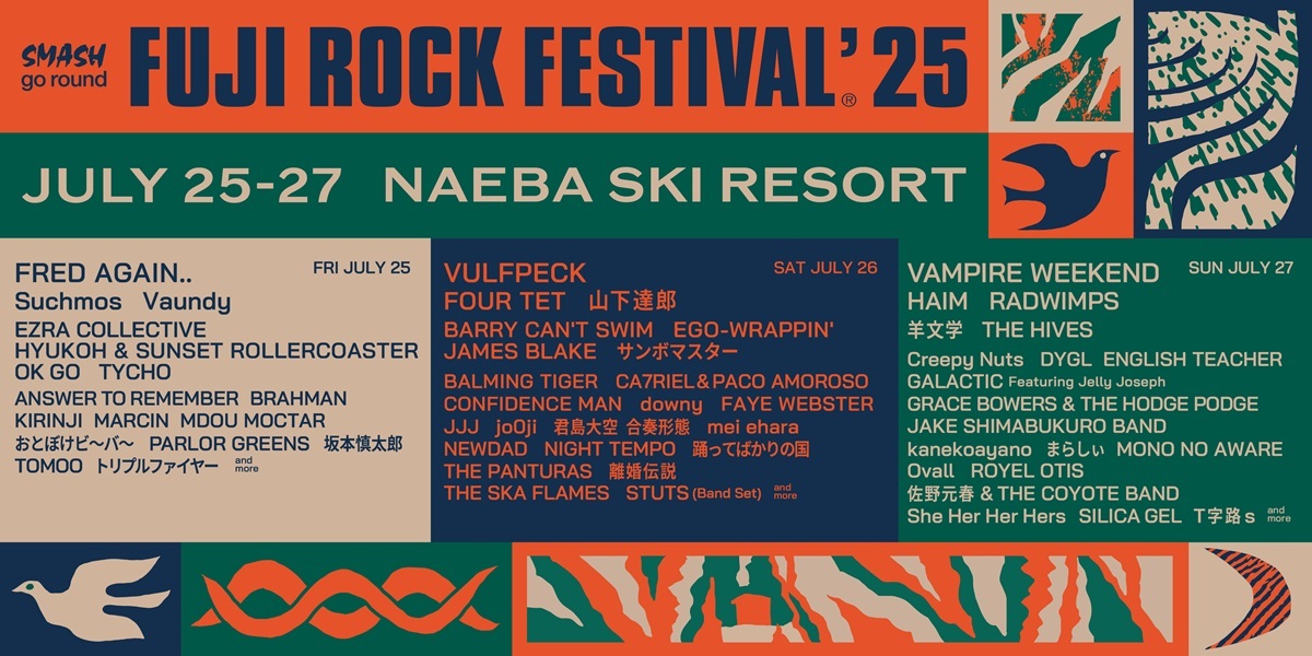 7月25日(金)、26日(土)、27日(日)に新潟県湯沢町の苗場スキー場で開催される『FUJI ROCK FESTIVAL ’25』(以下、フジロック)の、出演アーティスト第1弾が出演日とともに発表された。