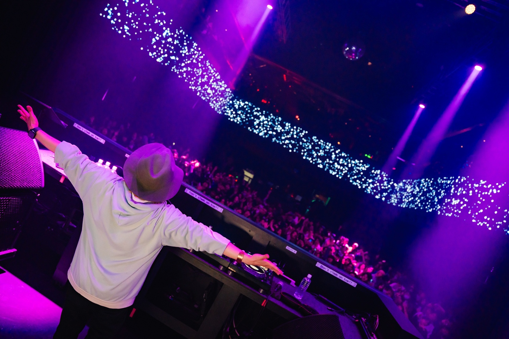 ZEROTOKYOは地下三層に分かれたダンジョンだが、23時の開場直後からとにかくどこも大盛況。B2フロアの奥の「BOX」では、DJの鴨居×KillUを皮切りに真っ赤な照明の下で爆音が鳴り響き、バーカウンター横の「R-BAR」ではryuuから一気呵成へ、DJのプレーに合わせてドリンク片手に体を揺らすオーディエンスでごった返す。B3フロアの「RING」にも人が押し寄せ、WATARUからRAM RIDERへとノンストップの盛り上がりが引き継がれる。B4フロアの「ENTER」スペースでは、あたたかい水族館からφ(TT,Ngukun,Maple CANE.)へと、通路のすぐ隣でDJがスピンしているのを間近に見られる。テクノ/ハウスやヒップホップ、ボカロ曲等何でもあり、クールでトランシーな音の洪水だ。