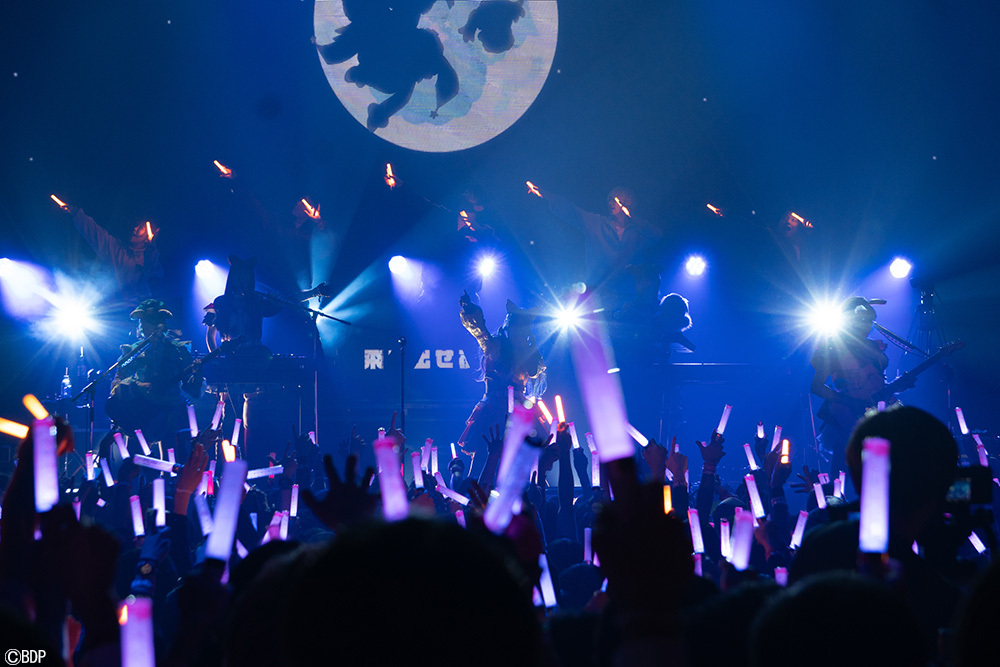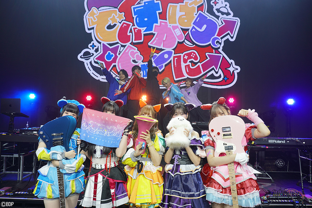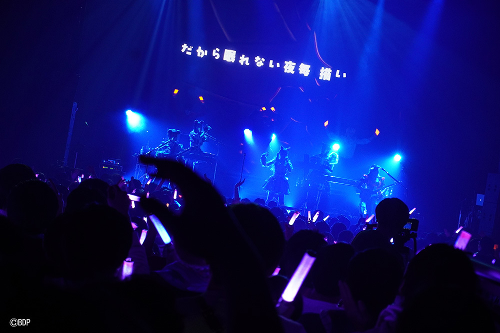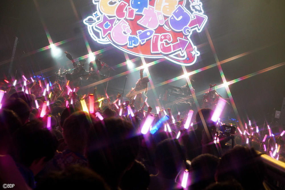 「私、限界まで働けます!」の言葉を合図に、漫画家としても活躍中のメンバー・藤が引きこもりながらも作品作りに心血を注ぐ、クリエイターの気持ちを歌った「限界現実サバイブ天使」がスタート。曲のモチーフとなっている藤の配信での定番挨拶「臨、兵、闘、者、皆、陣、烈、在、前!」のコール&レスポンスやマンガを使ったPV、ゲストとしてステージに登場した「ゼロから打ち師始めます。」のパフォーマンスも加わってステージはカオスな盛り上がりに。