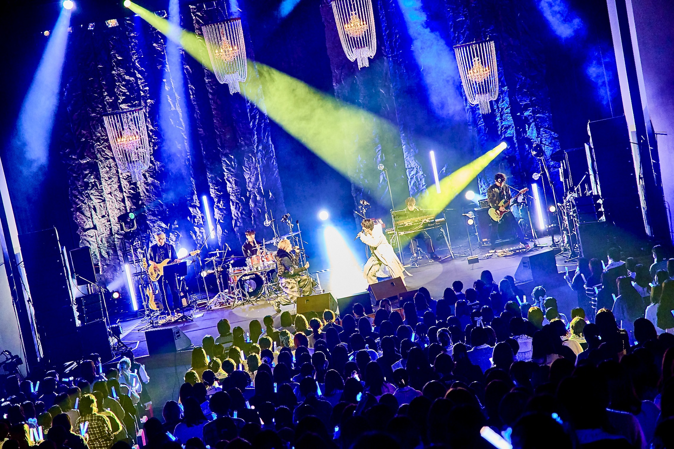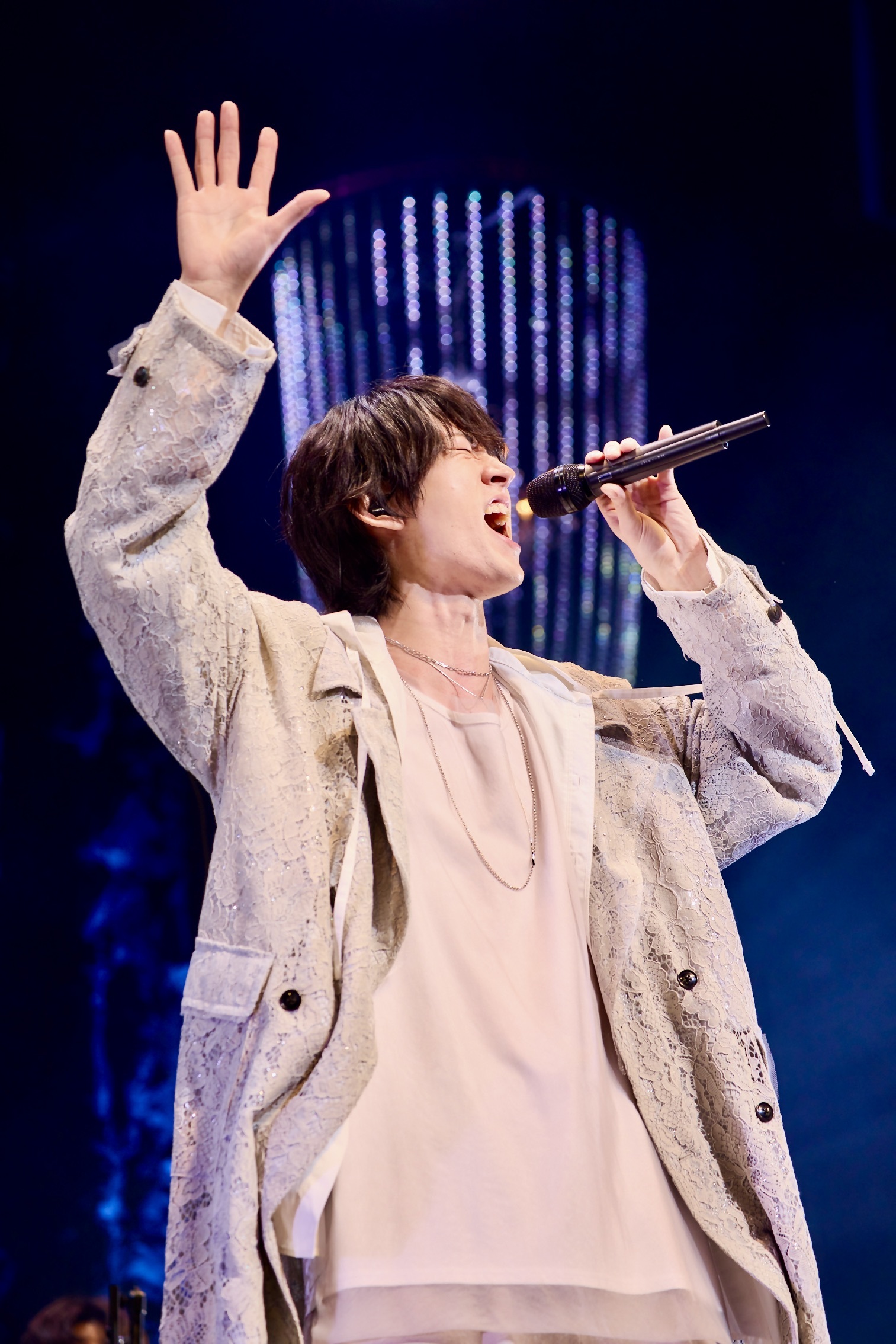 ステージにバンドメンバーが登場して、インスト曲「Raise」の演奏がスタート。1stアルバム『Raise』を締めくくった曲がオープニングを飾ると、作品とワンマンライブが地続きとなったような感覚になる。そしてステージ後方からゆっくりと歩きながら現れた和田雅成。観客が掲げた青色のペンライトに出迎えられながら歌い始めたのは「Dice」だった。マイクを握り締めながら響かせる歌声が、歌詞で描かれている想いを奥行き深く浮き彫りにしていく。開演を待ちわびていた人々が、耳を傾ける喜びに浸りきっていた。