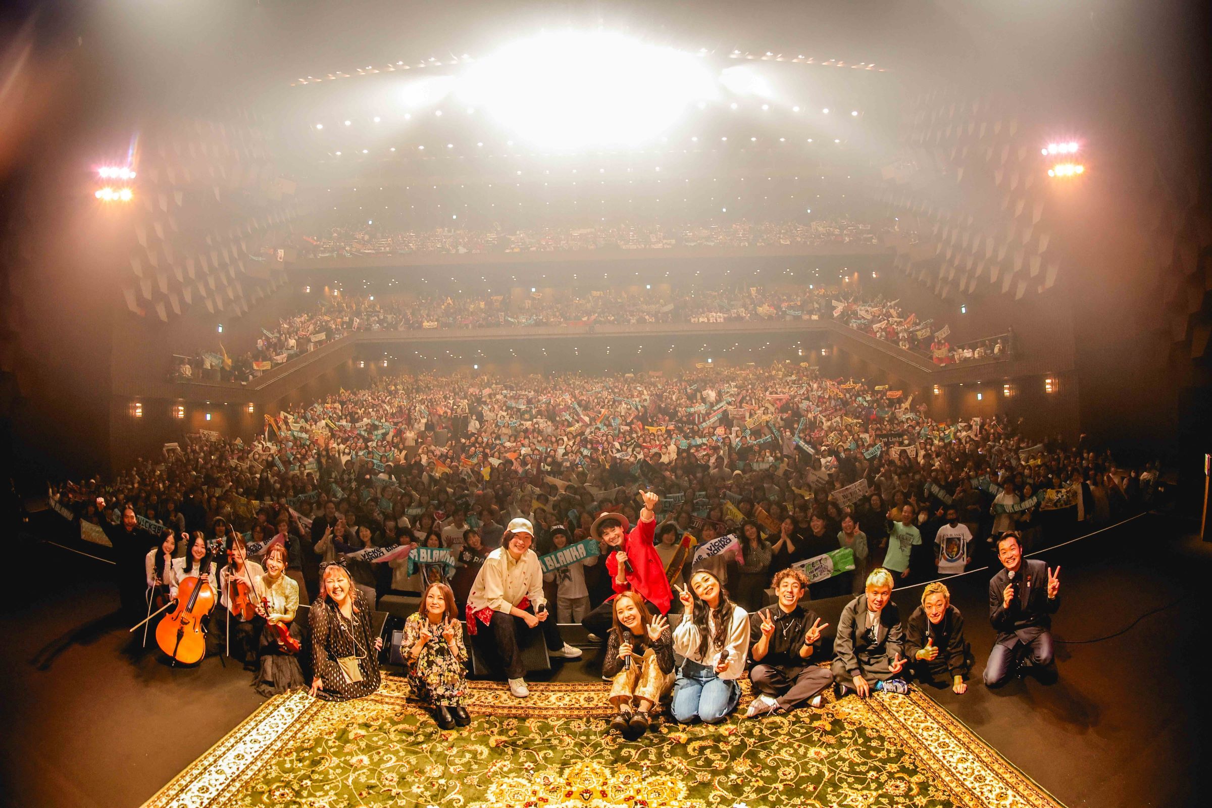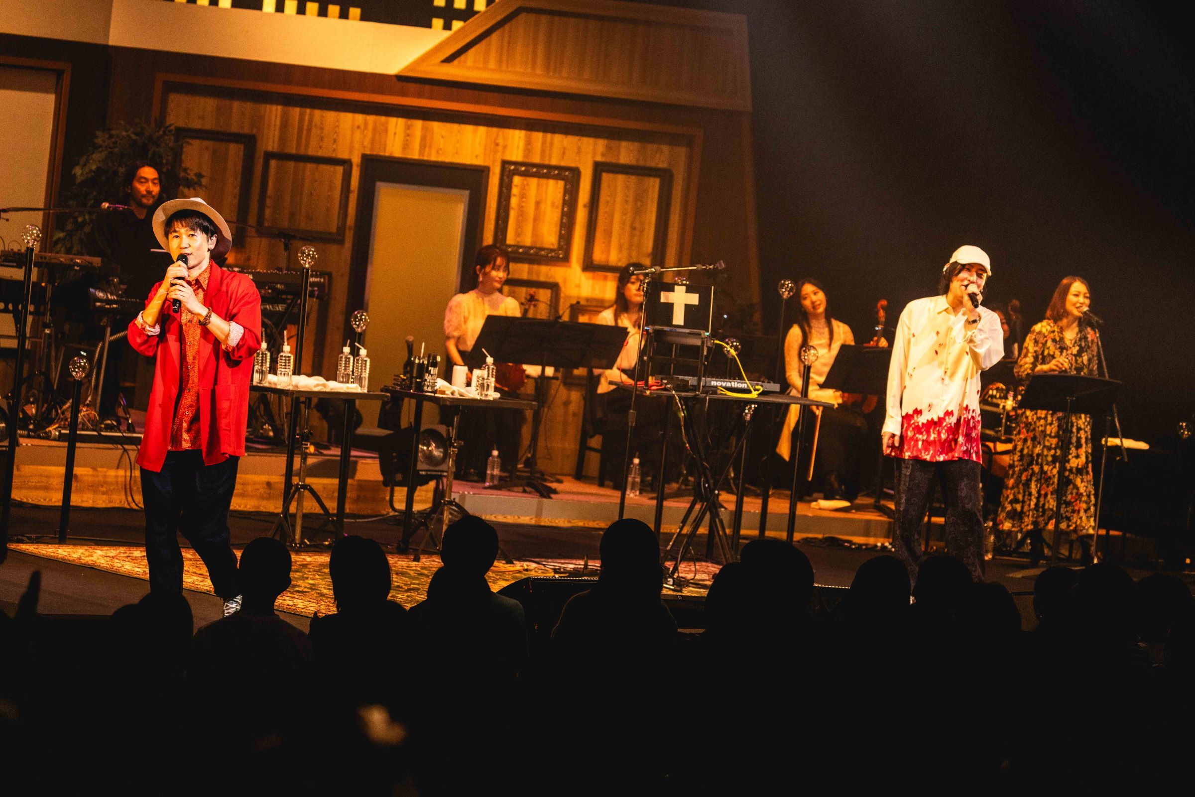 アンコールではMCの大抜卓人が再び登壇。2020 年のコロナ禍で行われた 2 人のコラボレーション配信ライブや同 年に開催された大阪文化芸術フェス主催の「OSAKA GENKi PARK」を振り返りつつ、「素晴らしい楽曲の数々を今日こ うやってみんなと一緒に大きな声で大合唱しながらライブを楽しめていることが本当にうれしい」と感慨深げに語る。