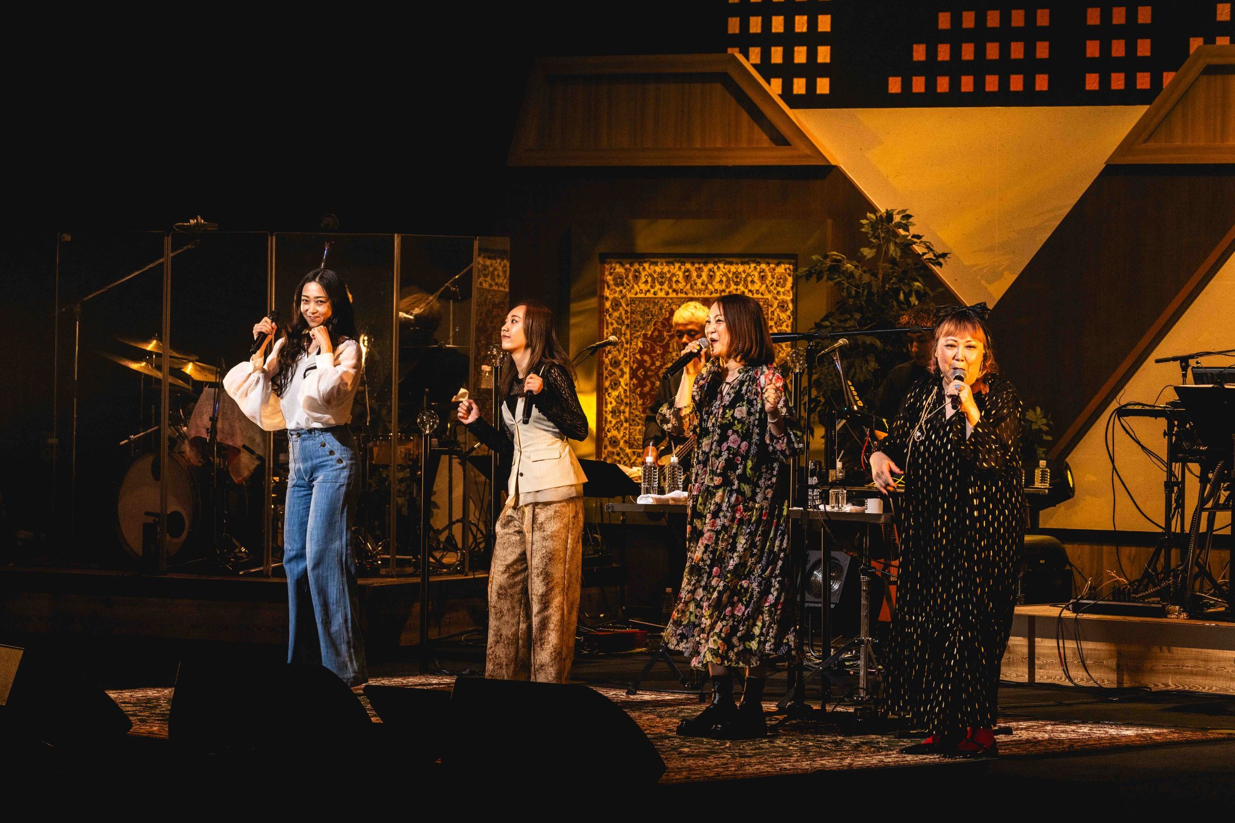 さらにFluffyや SINONも加わ り、4 名の女性ボーカリストによる女性アーティストメドレーも。「S・O・S」(ピンク・レディー)や「飾りじゃない のよ涙は」(中森明菜)、「CAN YOU CELEBRATE?」(安室奈美恵)、「アジアの純真」(PUFFY)など、個性の異なるボーカリストたちが昭和から平成まで幅広い年代の楽曲を歌い上げ、観客を大いに楽しませてくれた。