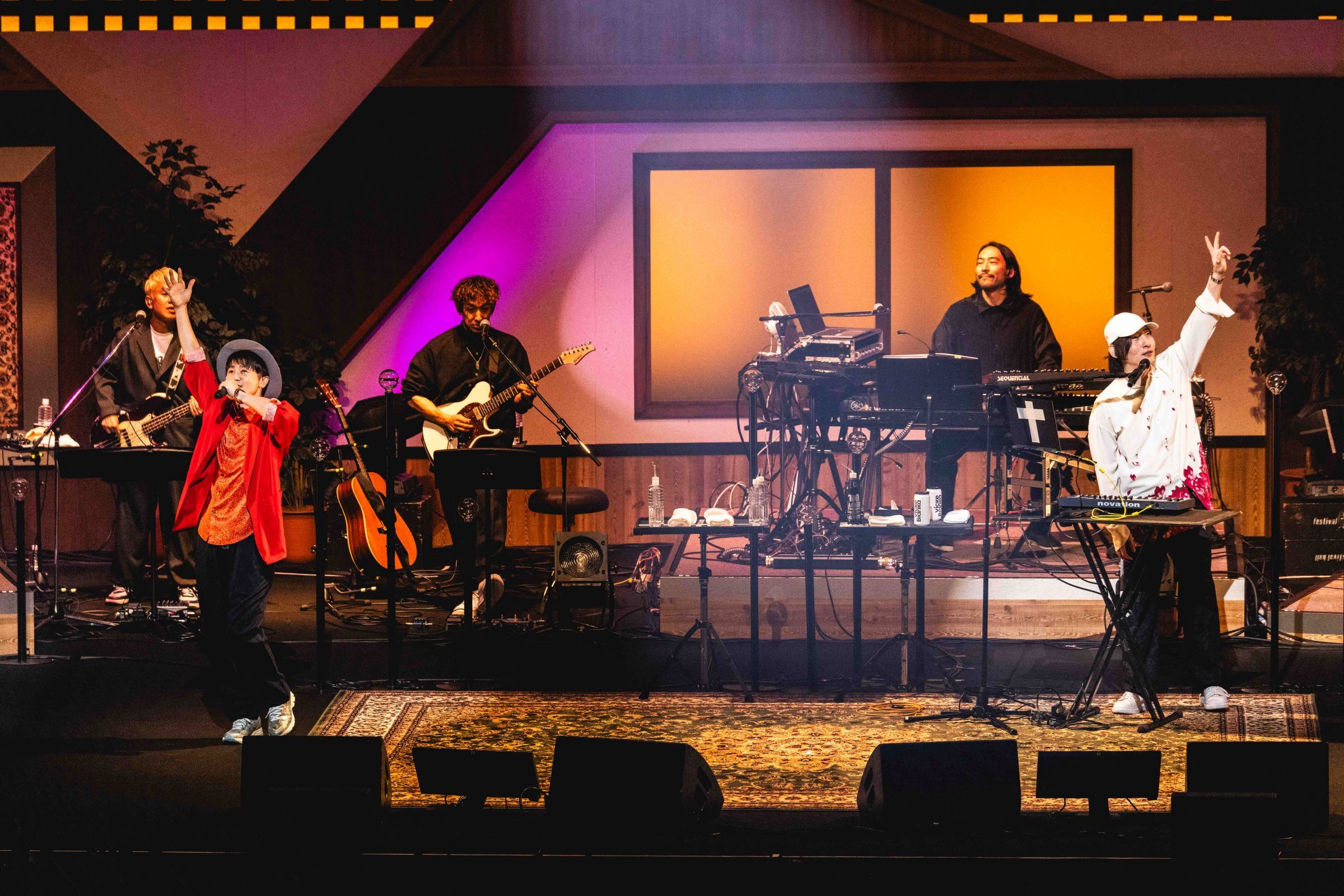 開演前にはMCを務める FM802のDJ大抜卓人が登場。イベントの趣旨を説明しつつ、「日本の音楽史に輝く、グローバルな素晴らしい曲の数々で紡がれる特別な時間をめいっぱい楽しんで」と、開幕の言葉を告げると、さっそく1曲目「夢の中へ」(井上陽水)へ。ご機嫌にステップを刻みながらステージに登場したナオト・インティライミとビッケブランカの2人。歌詞の言葉をジェスチャーで表現したり、美しいハーモニーを響かせたりと、観客を楽曲の世界観へと導いていく。