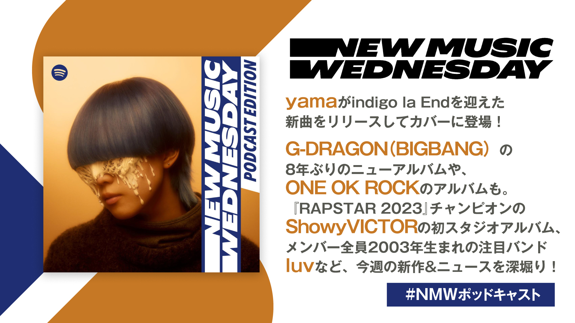 今週は、yamaがindigo la Endを迎えた楽曲をリリースしてカバーに登場。さらにG-DRAGON(BIGBANG)の8年ぶりのニューアルバムやONE OK ROCKのアルバム、『RAPSTAR 2023』チャンピオンのShowyVICTORの初のスタジオアルバム、メンバー全員が2003年生まれの5人組バンドluvをピックアップ!そのほかにもアーティストのライブやフェス情報も掲載。番組への感想やリクエストはSpotifyアプリのコメント機能から投稿を。