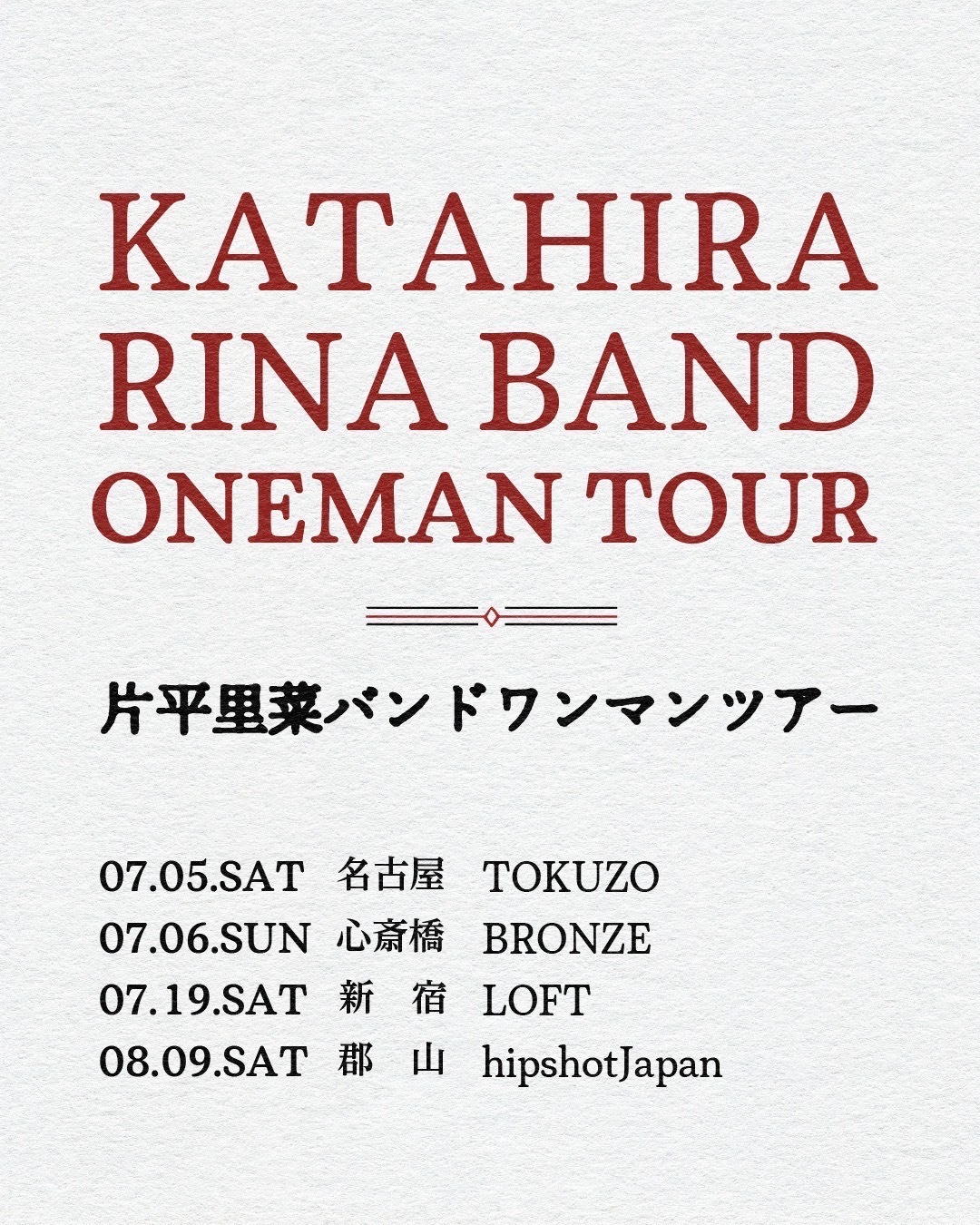 『片平里菜バンドワンマンツアー』『風の吹くまま 〜北の国まで〜』のチケットは、それぞれ3月1日(土)10:00からイープラスにて受付スタート。